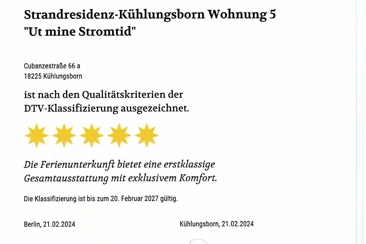 Die 7 Wohnungen gehören zu den Flaggschiffen der vom DTV zertifizierten deutschen Ferienwohnungen mit 1.216 bis zu 1.331 vergebenen Punkten. 5 Sterne gibt es ab 900 Punkte.
