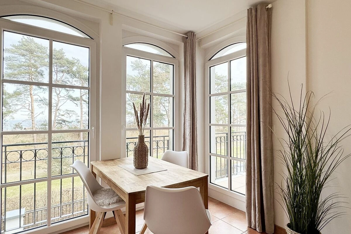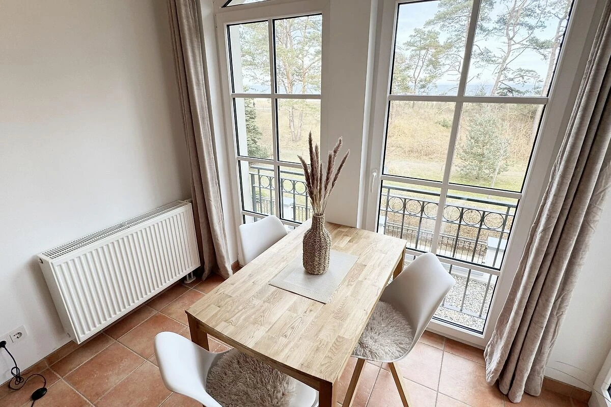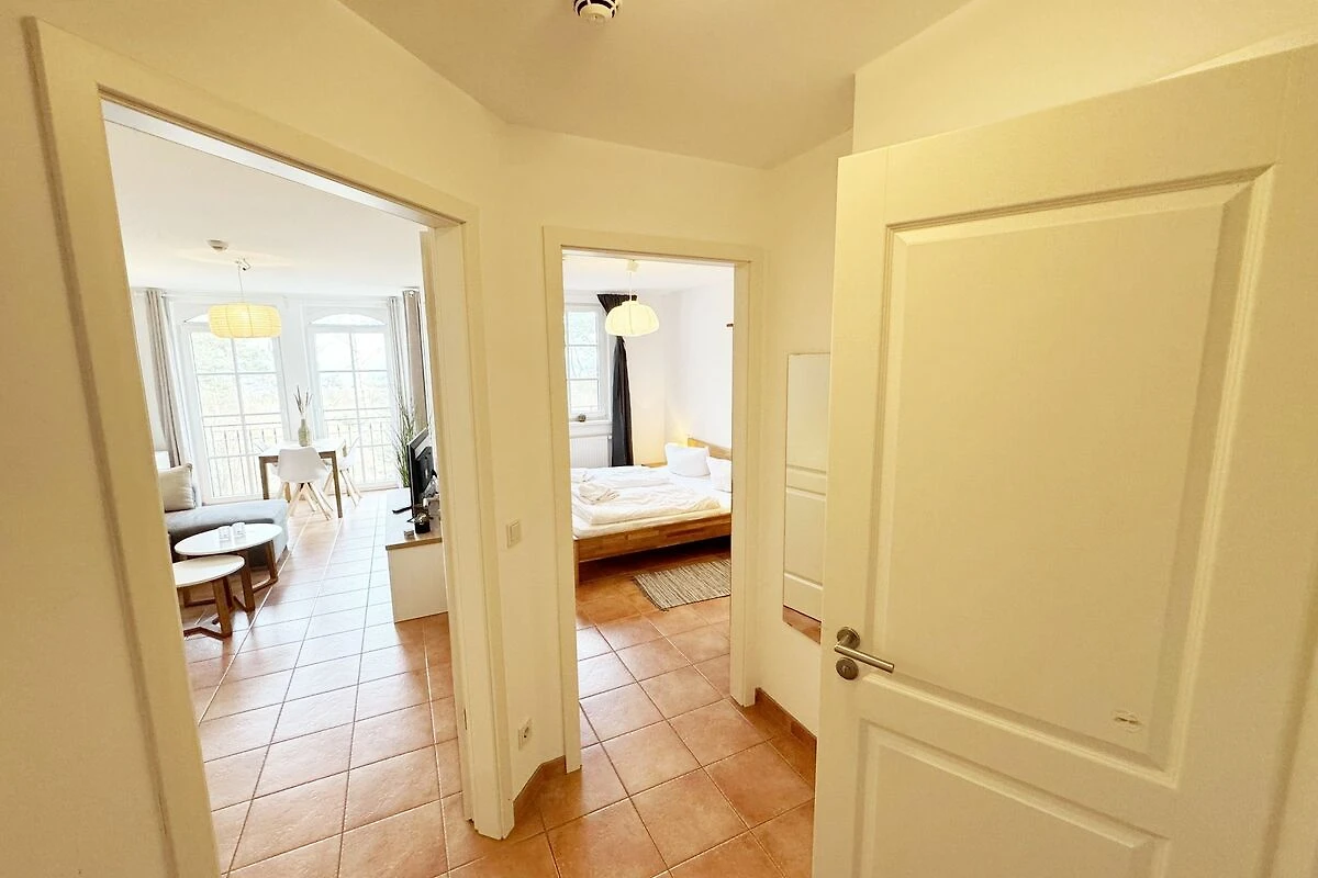 Die Appartementanlage Meeresblick im Ostseebad Baabe befindet sich ca. 80 m vom feinsandigen Ostseestrand entfernt. Ein idealer Ausgangspunkt um die Badesaison zu beginnen oder in der kälteren Jahreszeit die Ruhe durch ausgedehnte Spaziergänge am Strand zu geniessen. Aber auch der Wellnessbereich im Haupthaus der Meeresblickanlage lädt zum Entspannen ein. Zwei grosse Saunabereiche mit Ruheraum, eine Wellnessdusche sowie ein beheizbarer Pool stehen Ihnen inklusive zur Verfügung. In ca. 3 Gehminuten erreichen Sie das Zentrum wo Sie verschiedene Restaurant und Cafés besuchen können. Von Ihrem Balkon haben Sie durch die Baumkronen der Kiefern teilweise Blick auf das Meer.