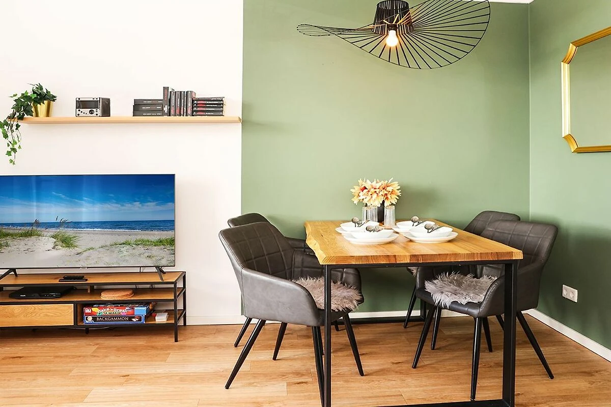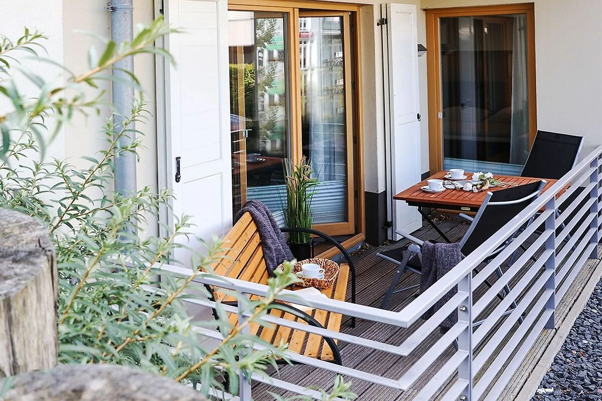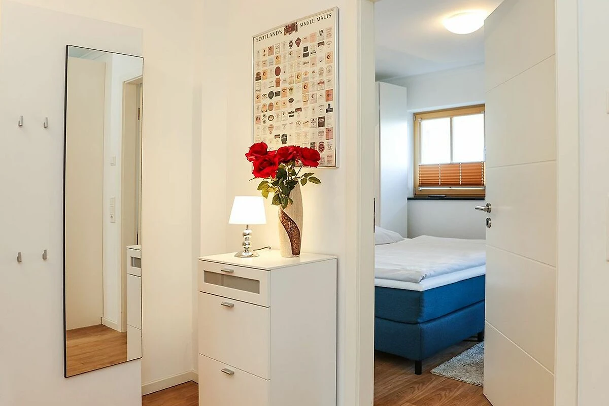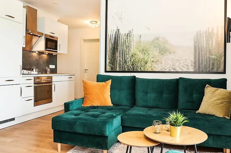 Die freundliche und moderne Zwei-Zimmer-Wohnung liegt im Erdgeschoss der Villa Sanddorn (nur 100 m vom Strand entfernt) und ist für maximal vier Erwachsene und ein Baby (im eigenen Reisebett) geeignet.