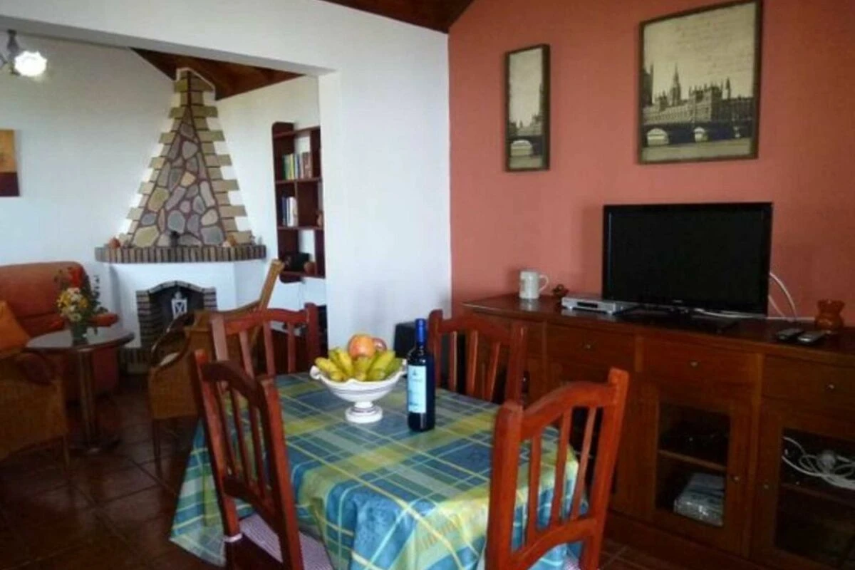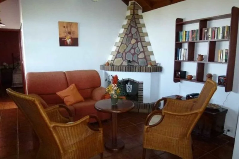 Highlight im Wohnbereich ist der Kamin. Auch an kühleren Tagen können Sie hier gemütlich auf dem Sofa oder den beiden Korbstühlen sitzen und sich am Feuer wärmen. Der Wohnbereich profitiert vom Tageslicht, das durch die grossen Fenster im Flur in den Raum fällt. Im Bücherregal stehen Ihnen viele Bücher zur Verfügung, wenn Sie ihren Koffer nicht mit Bücher belasten möchten, auch eine Musikanlage ist dort untergebracht.