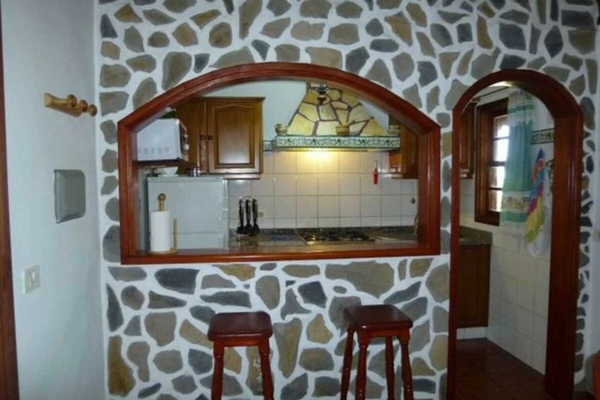 Casa Victor verfügt über ein Schlafzimmer, einen kombinierten Wohn-/Essbereich mit amerikanischer Küche und einem kleinen Bad. Ein schöner, heller Flur mit zwei grossen Fenstern führt vom Wohnbereich zum Schlafzimmer.