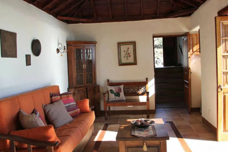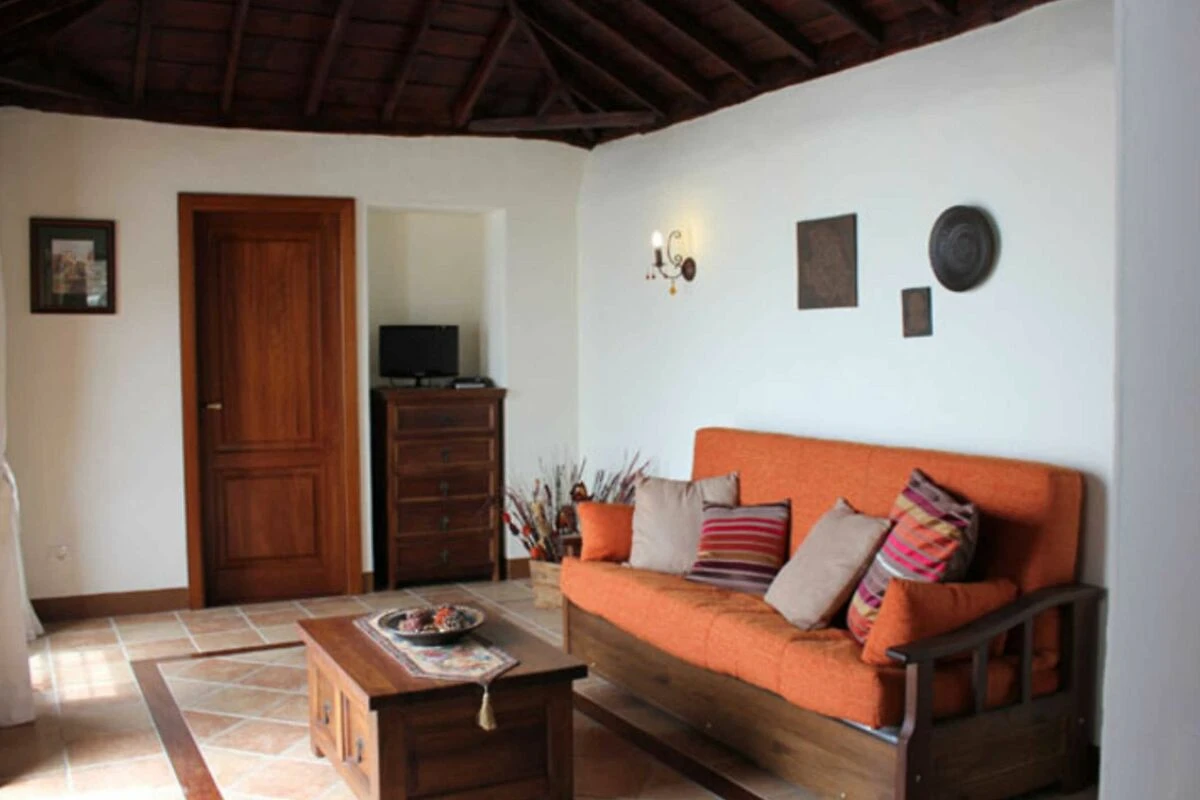 Das Wohnzimmer ist grosszügig geschnitten und durch seinen direkten Zugang zur Terrasse sehr hell. Auf dem grossen Sofa können Sie es sich gemütlich machen und den unverbauten Blick in die Natur und auf das Meer geniessen. Bei sehr klarer Sicht sehen Sie von hier aus sogar Teneriffa. Ein Fernseher mit Sat TV steht zur Verfügung, sollten Sie einmal nicht den Abend auf der Terrasse geniessen wollen.