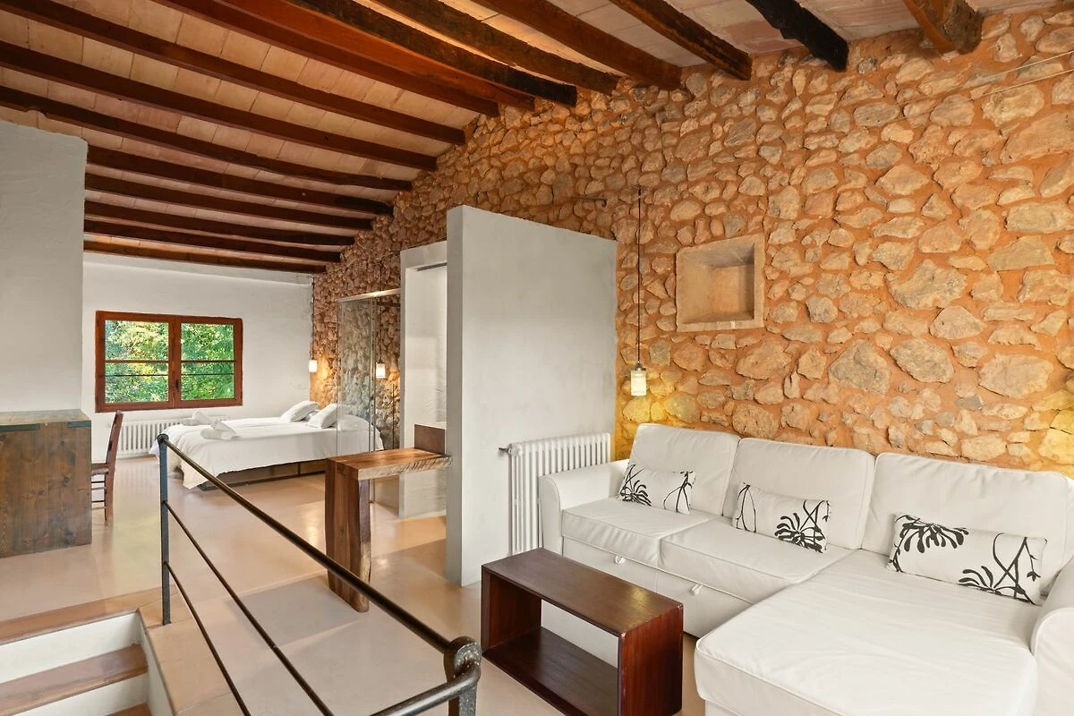Ihre Steinmauern, Holzbalken und authentischen Details treffen auf moderne Elemente wie Mikrozementböden in der Finca Can Mir und Finca Es Rafal, was eine frische und elegante Atmosphäre schafft, ohne den rustikalen Charme zu verlieren.