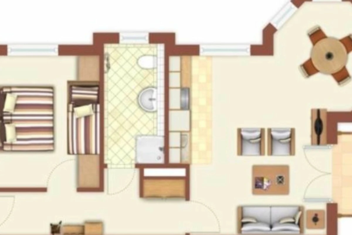 Die hochwertig eingerichtete 2-Zimmer-Ferienwohnung verfügt über ein komfortabel eingerichtetes Wohnzimmer (Flachbildfernseher, DVD-Player, etc.) mit einer komplett ausgestatteten Küchenzeile (Geschirrspüler, Mikrowelle, etc.). Im Erkerbereich des Wohnzimmers befindet sich der Esstisch. Das Schlafzimmer ist mit einem Doppelbett (neues Doppelbett 2025) sowie einem Einzelbett ausgestattet. Für Raucher gibt es eine Miniterrasse vor dem Wohnzimmer.