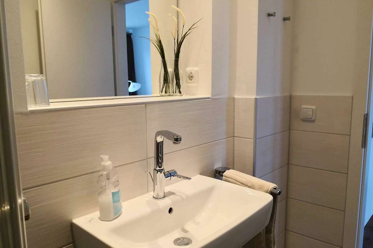 Zu jedem Zimmer gehört ein eigener PKW-Stellplatz. Bitte drucken Sie die Parkgenehmigung, welche Sie in einer separaten E-Mail erhalten, aus und legen diese sichtbar in Ihren PKW. W-LAN ist im kompletten Haus inklusive. Die Gästezimmer sind zur Anreise grundausgestattet. Während des Aufenthaltes ist jeder Gast für die Nachbeschaffung selbst zuständig. Eine Erstausstattung Bettwäsche und Handtücher wird ebenfalls zur Verfügung gestellt. Das Gästehaus der Strandhalle ist ein Selbstversorger-Haus.