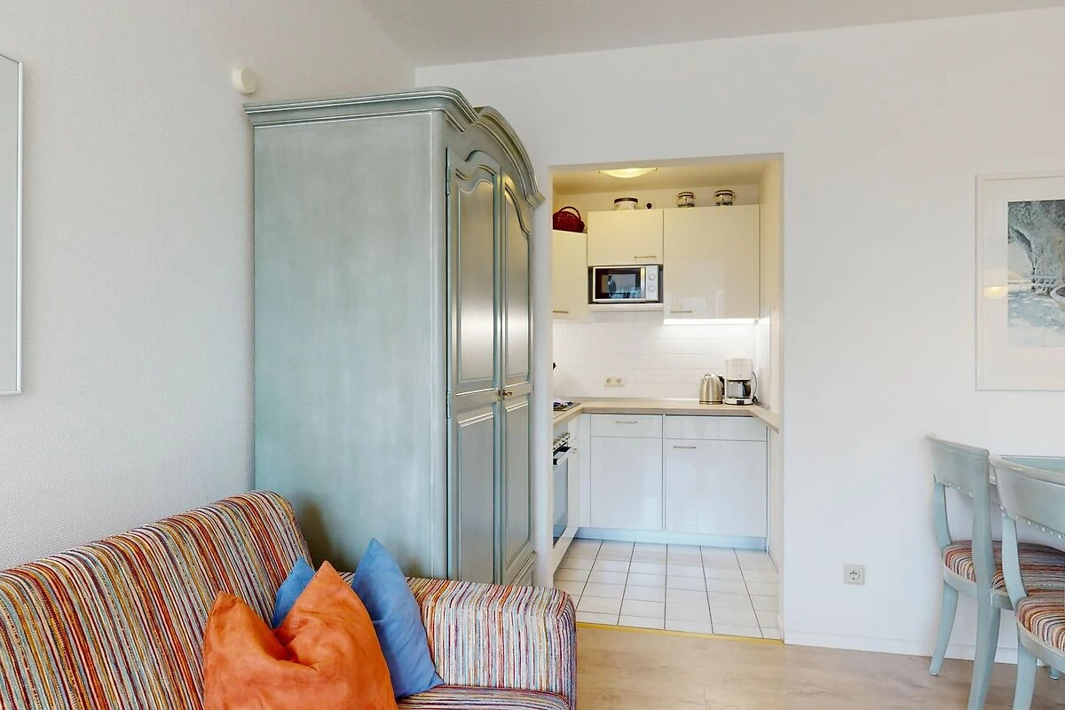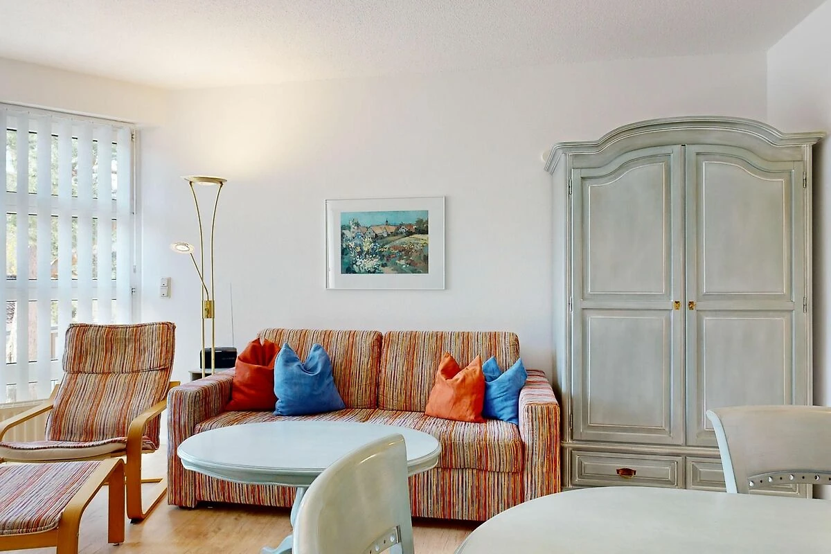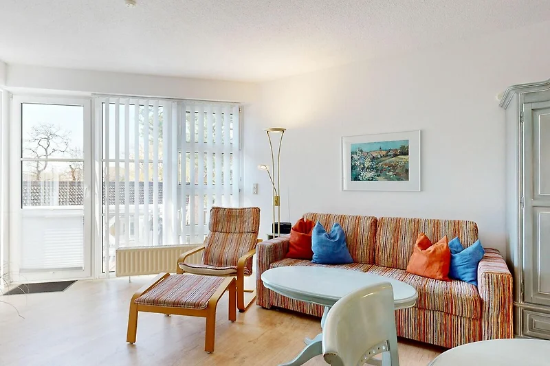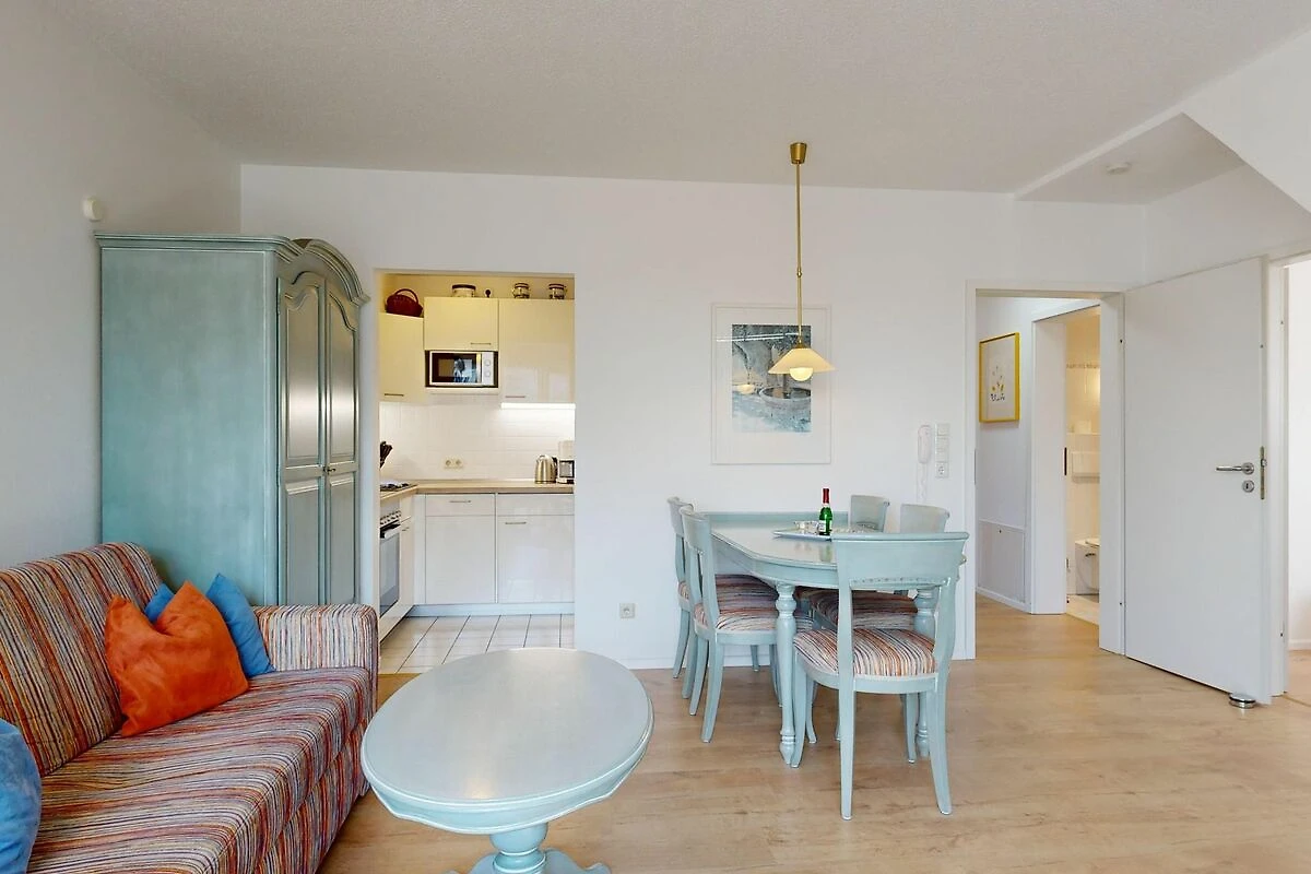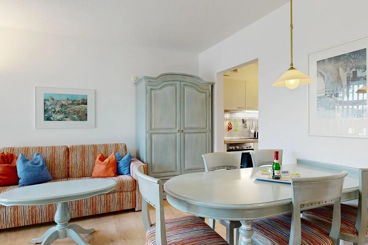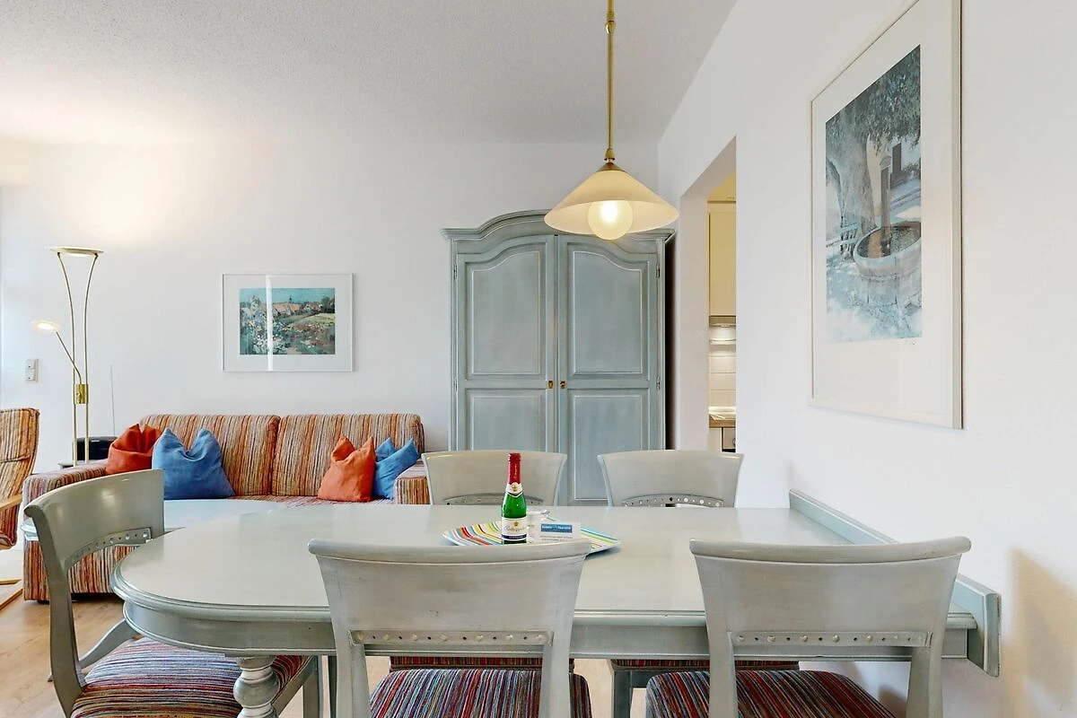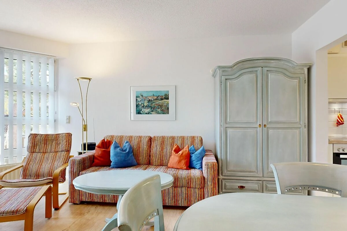 * Wohnzimmer: Couchgarnitur, Essplatz, Kabel-TV, Radio mit CD, DVD, Internetzugang (WLAN oder Kabel möglich)