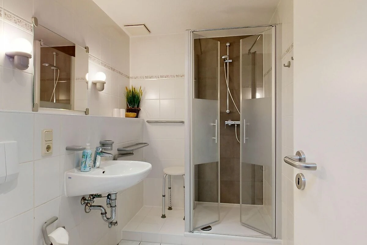 * 1 Badezimmer mit Dusche, WC und Föhn