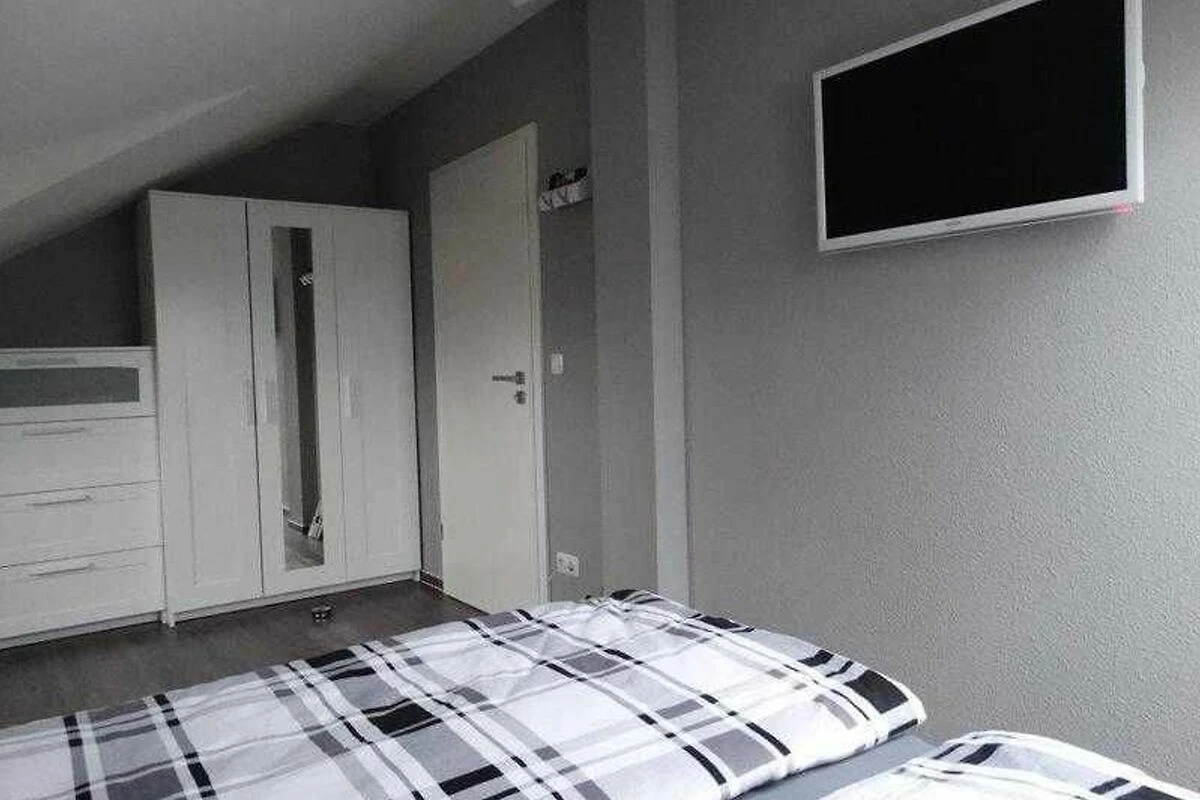 - 1. Schlafzimmer mit Doppelbett, Kleiderschränken und TV