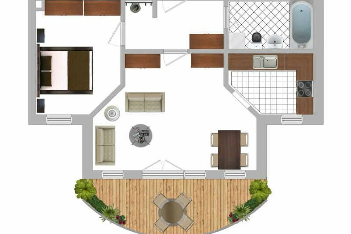 • Im Wohnzimmer befinden sich ein Flachbildfernseher (Sat-TV).