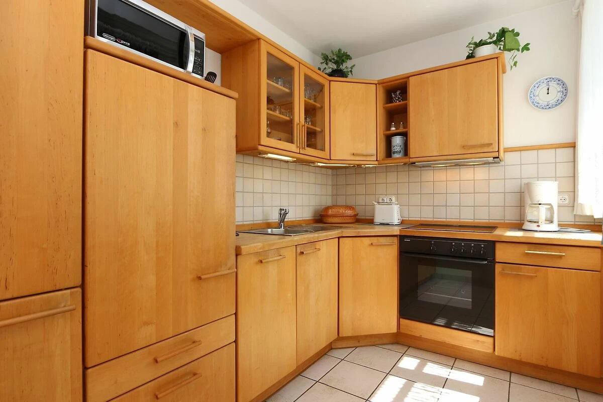 • Küche mit Einbauküche inkl. Herd, Mikrowelle, Eierkocher, Toaster, Spülmaschine, Wasserkocher, Kühlschrank und reichlich Geschirr.