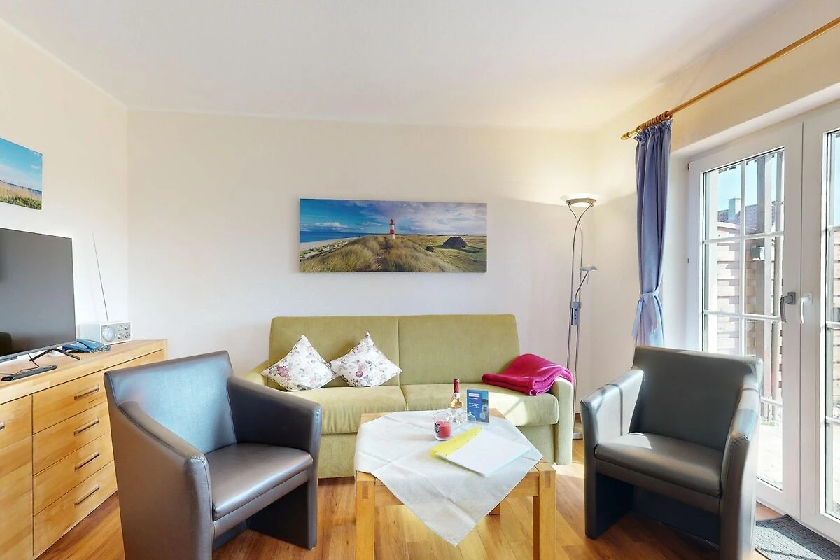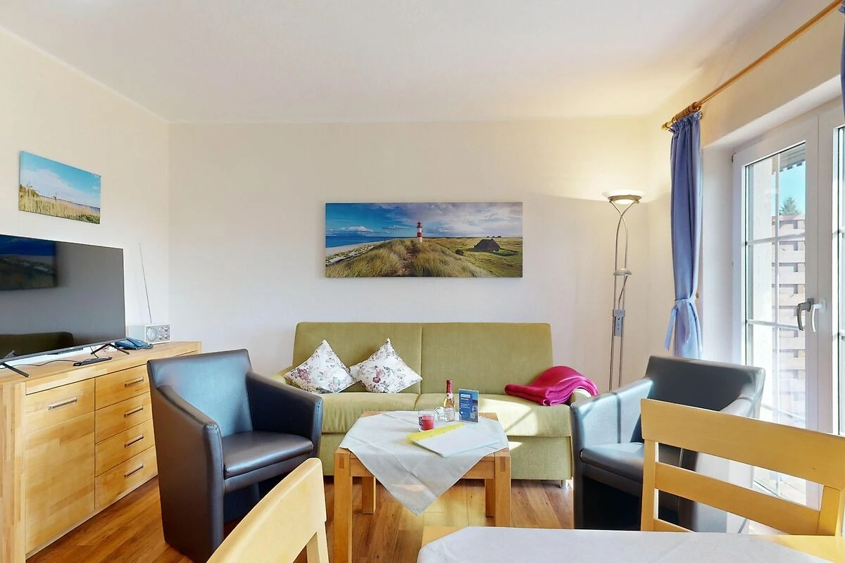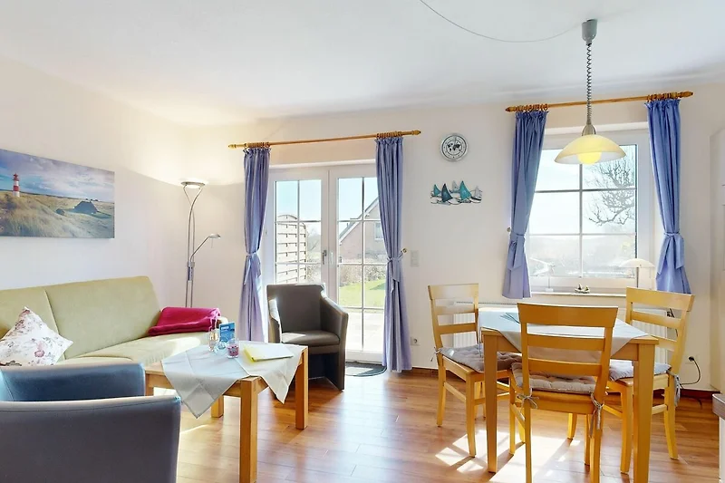 Wohnzimmer: Couchgarnitur (Schlafgelegenheit für 1 Person), Smart-TV, Radio mit CD, WLAN-Internetanschluss