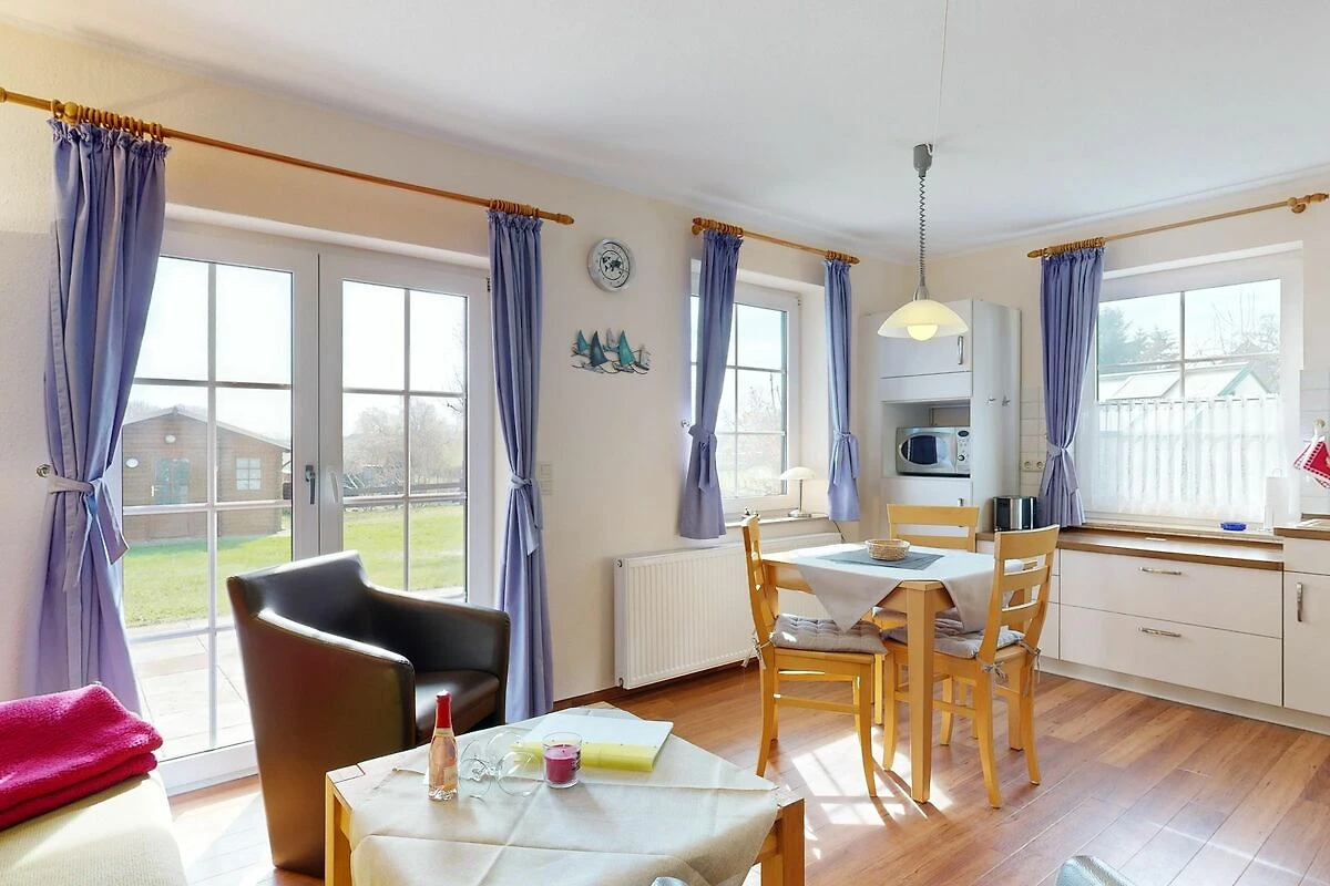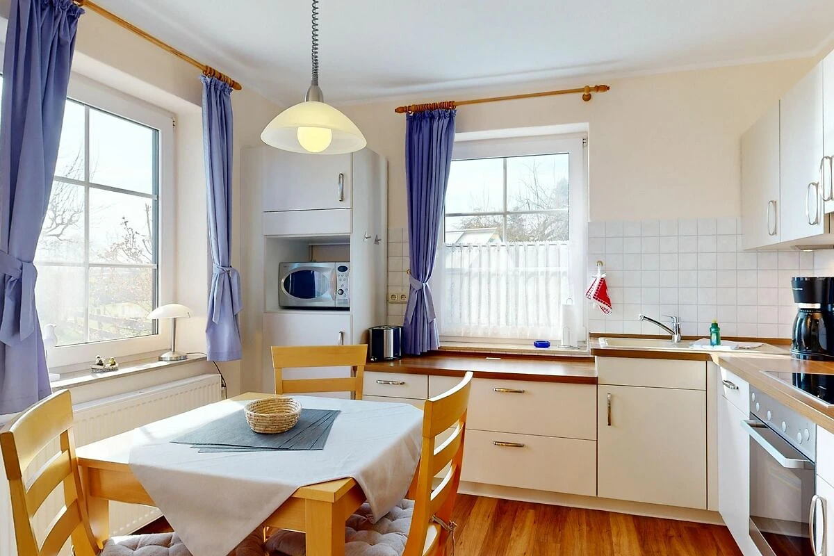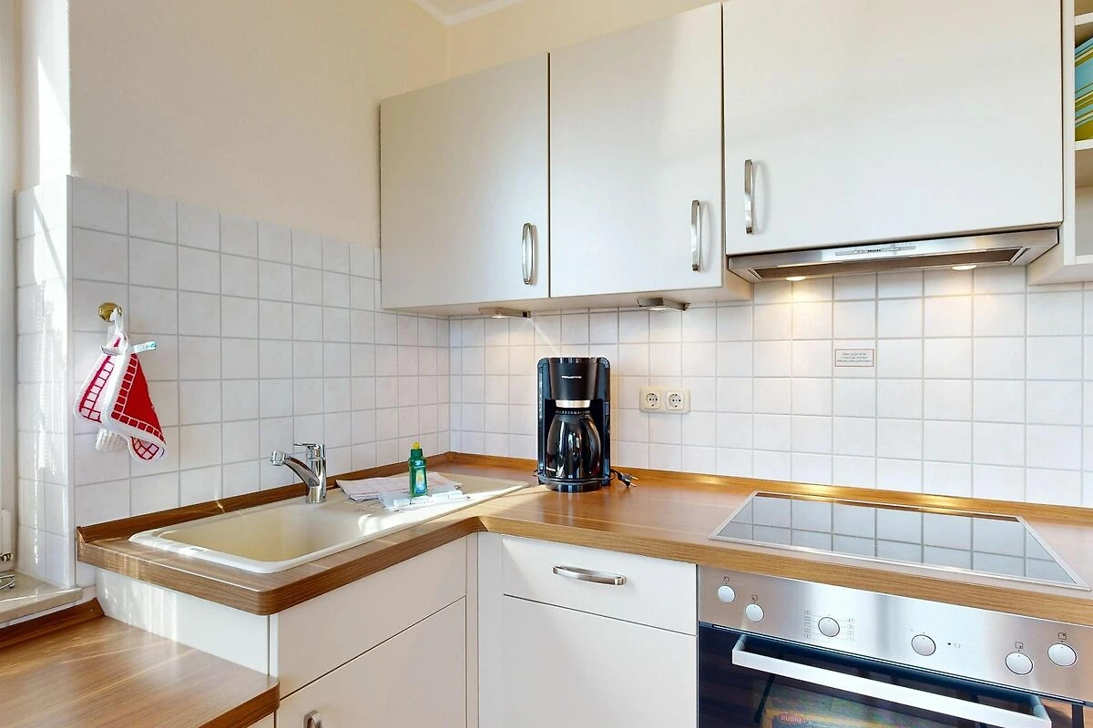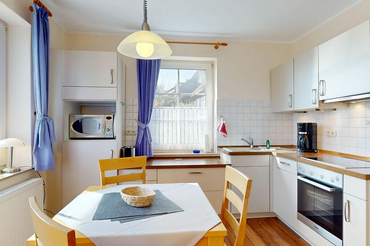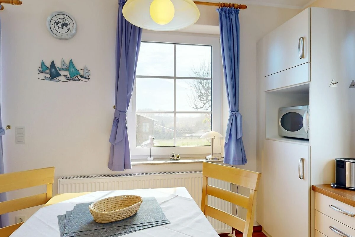 Die Ferienwohnung für 2 Personen (40 qm) befindet sich im reetgedeckten Ferienhaus Möwe in dem einmaligen Urlaubsort Lancken-Granitz an der 100 Jahre alten Dorflinde. Sie verfügt über eine hochwertige Ausstattung
