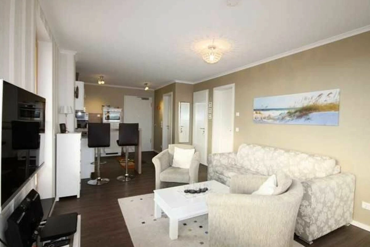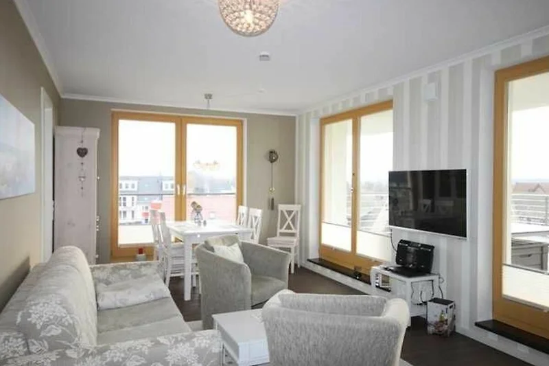 Es erwartet Sie eine liebevoll und komfortabel eingerichtete Ferienwohnung mit Meerblick in der dritten Etage. Ein Lift ist vorhanden.