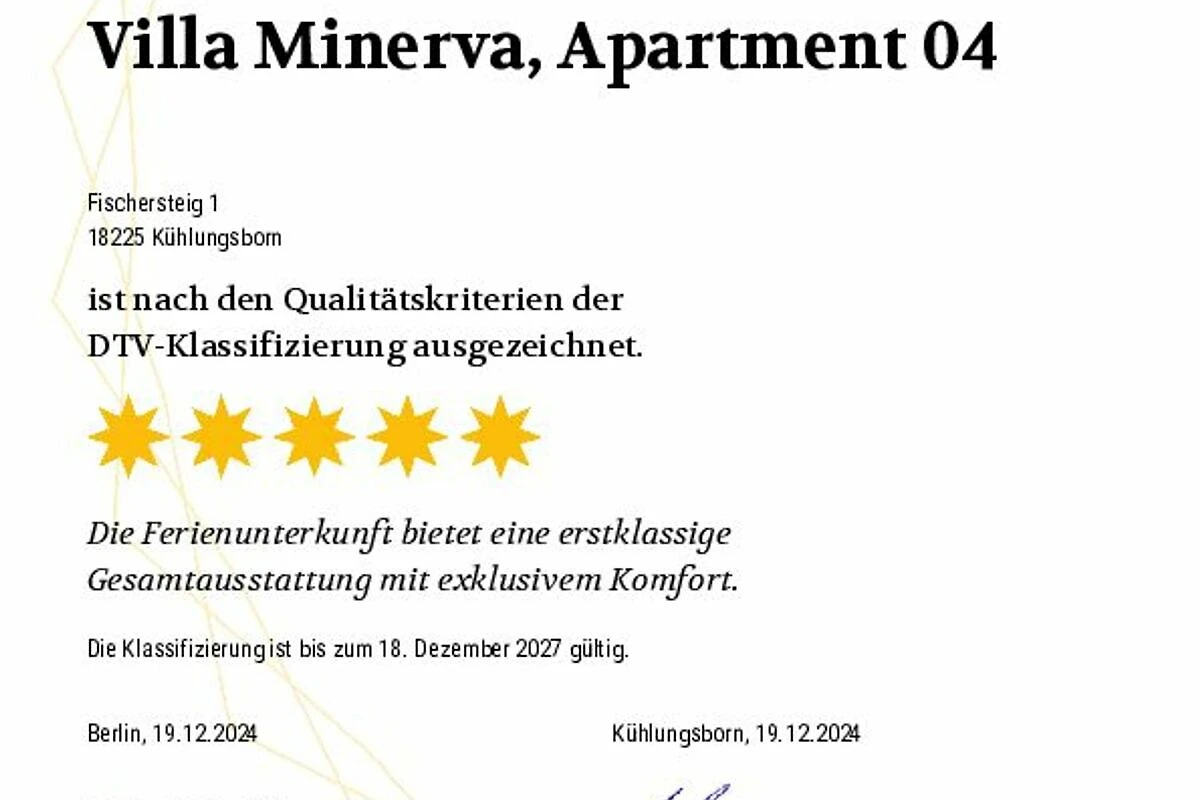 2024 wiederholt offiziell mit 5 Sternen bewertet für höchsten Anspruch und Komfort und Qualität.