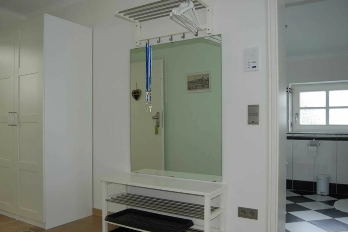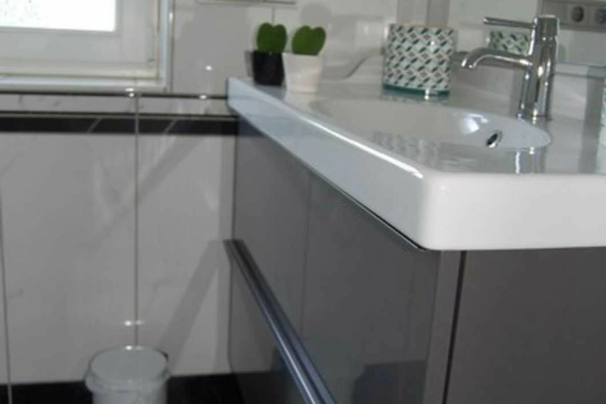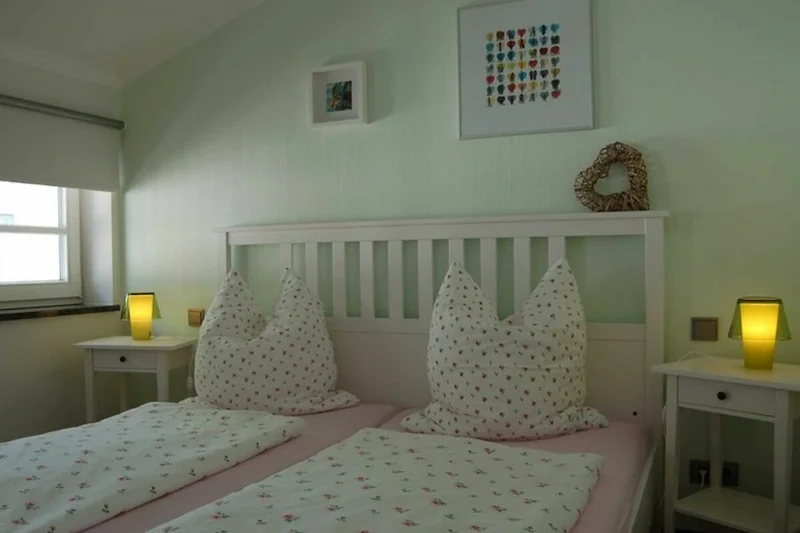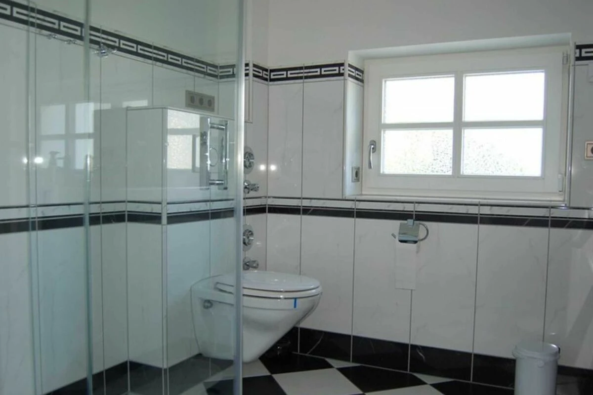 Die Wohnungen 1 und 2 sind insofern behindertenfreundlich ausgestattet, als dass die Treppe zum Obergeschoss geradeausläufig, 1,25m breit, mit sehr bequemen Stufen und sicherem Handlauf ausgestattet ist. Die Eingangstüren und Innentüren dieser Ferienwohnungen sind 1 Meter breit. Die Duschwannen sind bodengleich und mindestens 90cm x 90cm gross.