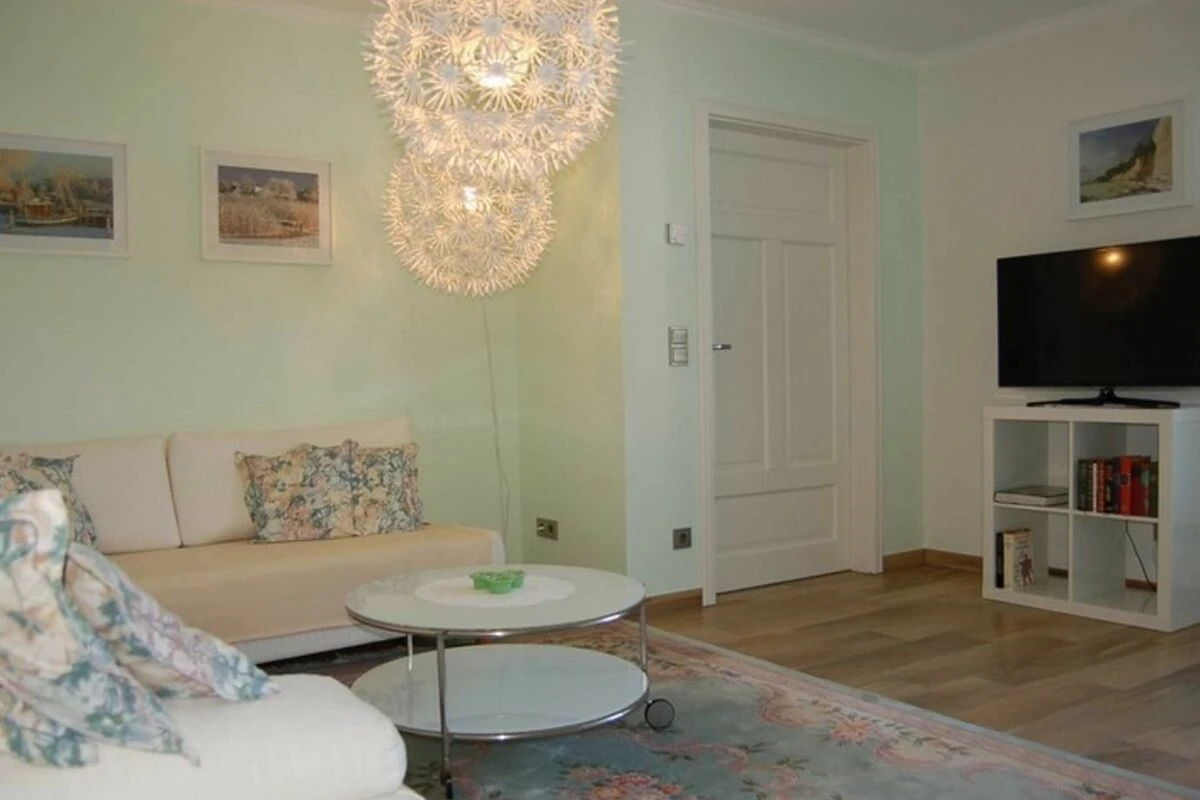 Die besonders ruhige und zugleich zentrale Lage im historischen Teil von Binz, etwa 50m vom „Schmachter See“ und 300 m vom Ostseestrand und der Seebrücke entfernt, ist idealer Ausgangspunkt für alle Spaziergänge und Besorgungen des täglichen Bedarfes im alten Ortskern sowie für Wander-, Fahrrad-, Bus- und Pkw-Touren zu den Sehenswürdigkeiten der Umgebung. Nicht nur in den Zeiten der Hochsaison haben Sie von Binz aus die Möglichkeit, Schiffsausflüge zu anderen Bädern und Attraktionen von Rügen zu unternehmen. Dies ist auch, von anderen Häfen Rügens, zu den Inseln Hiddensee, Usedom, Bornholm und nach Swinemünde möglich. Mit dem „Rasenden Roland“, dem historischen Dampflok-Zug, wird vom Kleinbahnhof aus nicht nur der Weg zum Ziel, sondern Sie erreichen mit ihm auch sehenswerte andere Örtlichkeiten an der Ostküste der Insel. In nächster Nähe laden ein zwei grossartige Kinderspielplätze, die berühmte Bäderarchitektur von Binz, Boutiquen aller Art, mehrere Supermärkte, Bars und Cafés, eine Vielfalt von attraktiven Restaurants sowie eine Fischräucherei in den Dünen mit herrlichem Blick auf die Perlenkette der Bäderstil-Villen an der Promenade, die weitgezogene Bucht, den Strand und das Meer – alles nur wenige Schritte entfernt. Die Freizeitmöglichkeiten werden ergänzt durch einen Tennisplatz im Ort, Minigolf-Platz am Ortsausgang, wo auch in Kürze ein Golfplatz entsteht. Andere Golf-Möglichkeiten auf der Insel und auch ein Reiterhof in nur wenigen Kilometern Entfernung kommen hinzu. Besuchen Sie von Juni bis September die legendären Störtebeker-Festspiele auf der Freilichtbühne von Ralswiek, die für fast jeden Gast der Insel ein „Muss“ sind. Binz bietet darüber hinaus ein umfassendes Unterhaltungsangebot, das für jeden etwas Passendes bereithält, und eine Reihe von Veranstaltungen sportlicher Art insbesondere am Strand. Das 2013 eröffnete Naturerbe Zentrum sowie das Jagdschloss mit weitem Rundum-Blick über die Insel sind nach nur wenigen Kilometern auch zu Fuss gut erreicht und bieten spektakuläre Blicke über die Insel und das Meer. Der (DB-) Grossbahnhof von Binz wird nach etwa 600m erreicht und verbindet über IC Züge mit fernen Destinationen. Darüber hinaus gibt es sogar zeitweise ICE-Verbindungen über Berlin nach Süden und Südwesten Deutschlands. Die Autobahn A20 ist über eine Schnellstrasse mit Stralsund verbunden. Nach Überqueren der historischen Ziegelgrabenbrücke oder der neuen Rügenbrücke erreichen Sie Ihre Traumwohnung über Bergen - oder Sie nutzen die besonders reizvolle Alleenstrasse über Garz und Putbus, die in der Regel ausserdem staufrei ist.