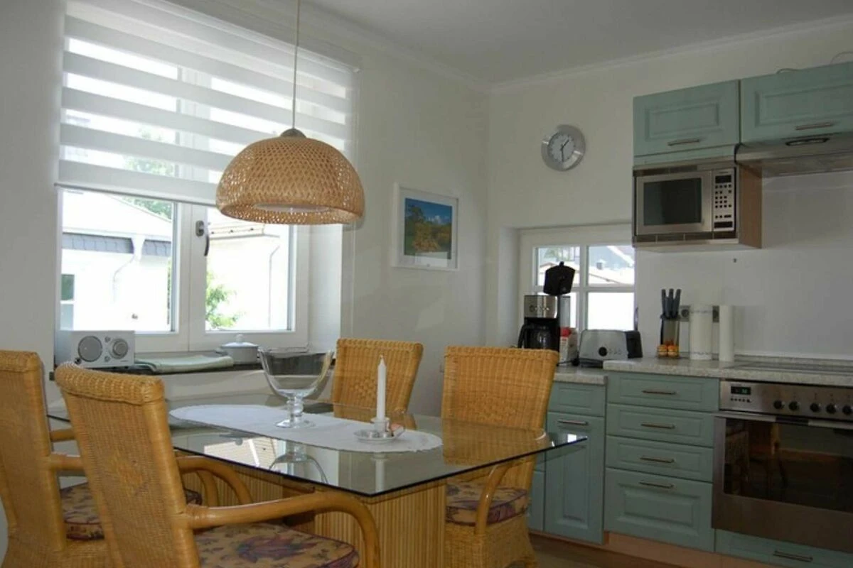 • Die Ferienwohnungen befinden sich im historischen Ortskern von Binz in neu erbauten hochwertigen Gebäuden, die architektonisch den klassischen Vorbildern des Ortes folgen. Das Vorderhaus mit seinen zwei Ferienappartements 1 und 2 im 1. Obergeschoss liegt in einer sehr zentralen, aber dennoch ruhigen und alleenähnlichen schmalen Strasse mit schönem alten Baumbestand. Die Ferienwohnung 3 befindet sich im Hinterhaus desselben, besonders ruhig gelegenen Grundstückes im Erd- und Obergeschoss. Die unmittelbare Nähe des „Schmachter Sees“ mit seiner parkähnlichen Umgebung, idyllischen Wegen für Fussgänger und Radfahrer sowie einem Wasserspielplatz bietet für Jung und Alt viel Beschauliches und herrliche Abwechslung. Sie verbringen hier Ihre Urlaubstage in einem wahren Erholungsparadies ohne Trubel und erreichen in etwa 5 Minuten jeden bedeutenden Punkt im lebhafteren Zentrum von Binz, die Seebrücke, die Strandpromenade und den Ostseestrand. Ihr Standort ist auch optimal für jede Art von fussläufigen Einkäufen des täglichen Bedarfs, zum „Shopping“, für Ihre Besuche interessanter Restaurants, Bars, Cafés und der Fischräucherei in den Dünen am Ende der Strandpromenade. Ihr Auto und Ihre Fahrräder sind auf dem Grundstück sicher abgestellt, so dass Sie von dieser zentralen Lokation aus jederzeit auch die Umgebung des Ortes und die ganze Insel besuchen und kennenlernen können. Die Wohnungen und ihr Inventar sind nicht nur neu, sondern garantieren Ihnen einen 4-Sterne-Komfort. Ihr erholsamer und komfortabler Urlaub ist mit dieser Ferienwohnung zu jeder Jahreszeit gesichert. Sie müssen nur noch kommen – und: Bringen Sie genug Zeit mit! Wir, die Familie Rademacher, freuen uns auf Ihren Besuch!