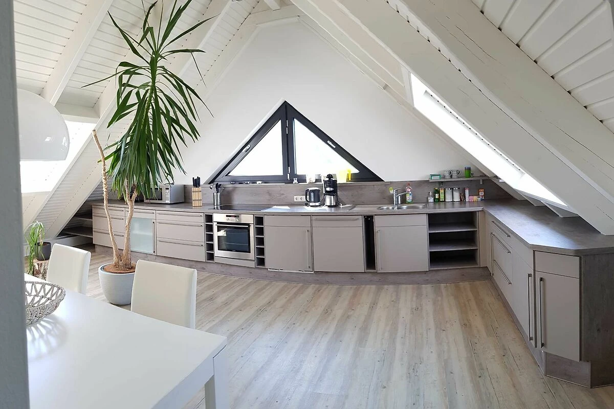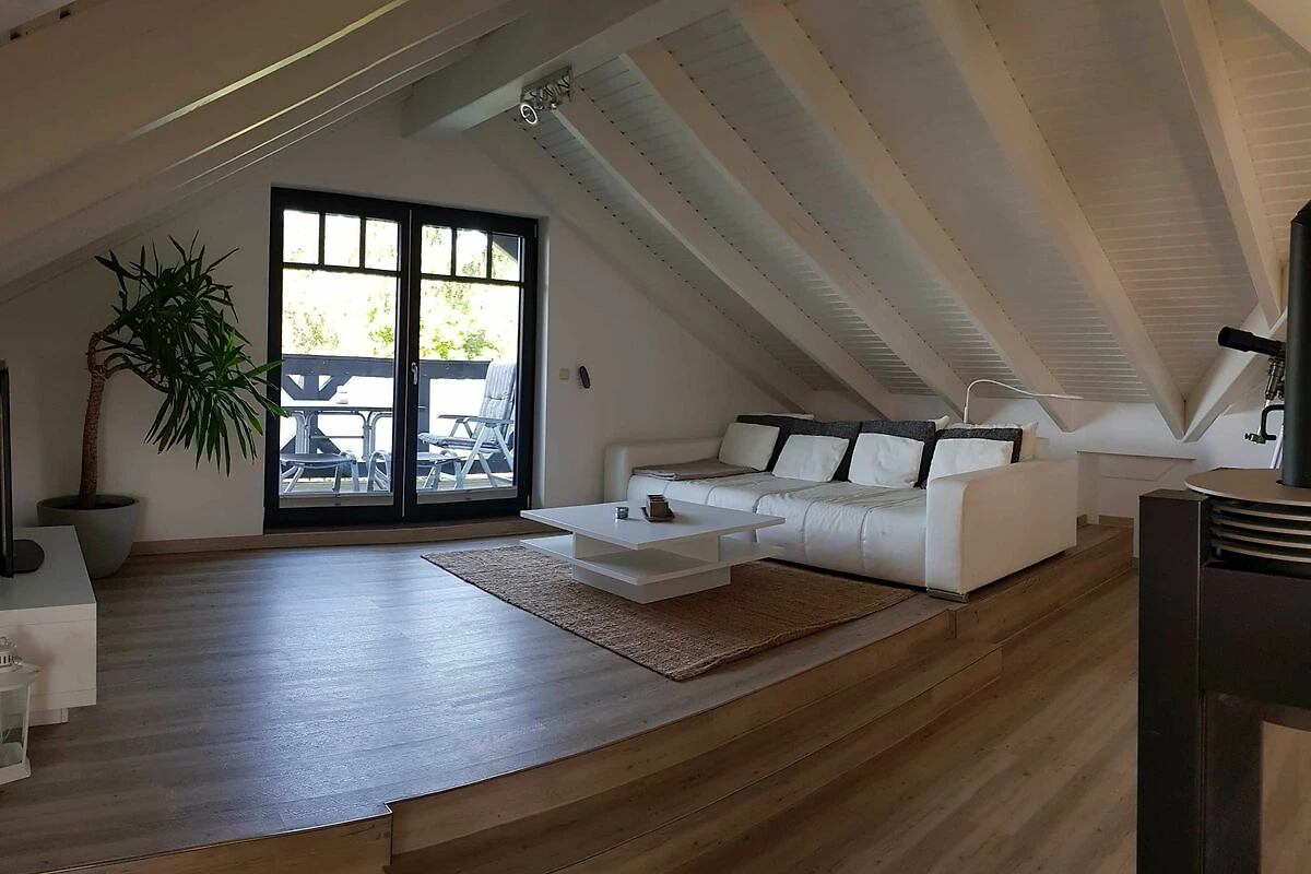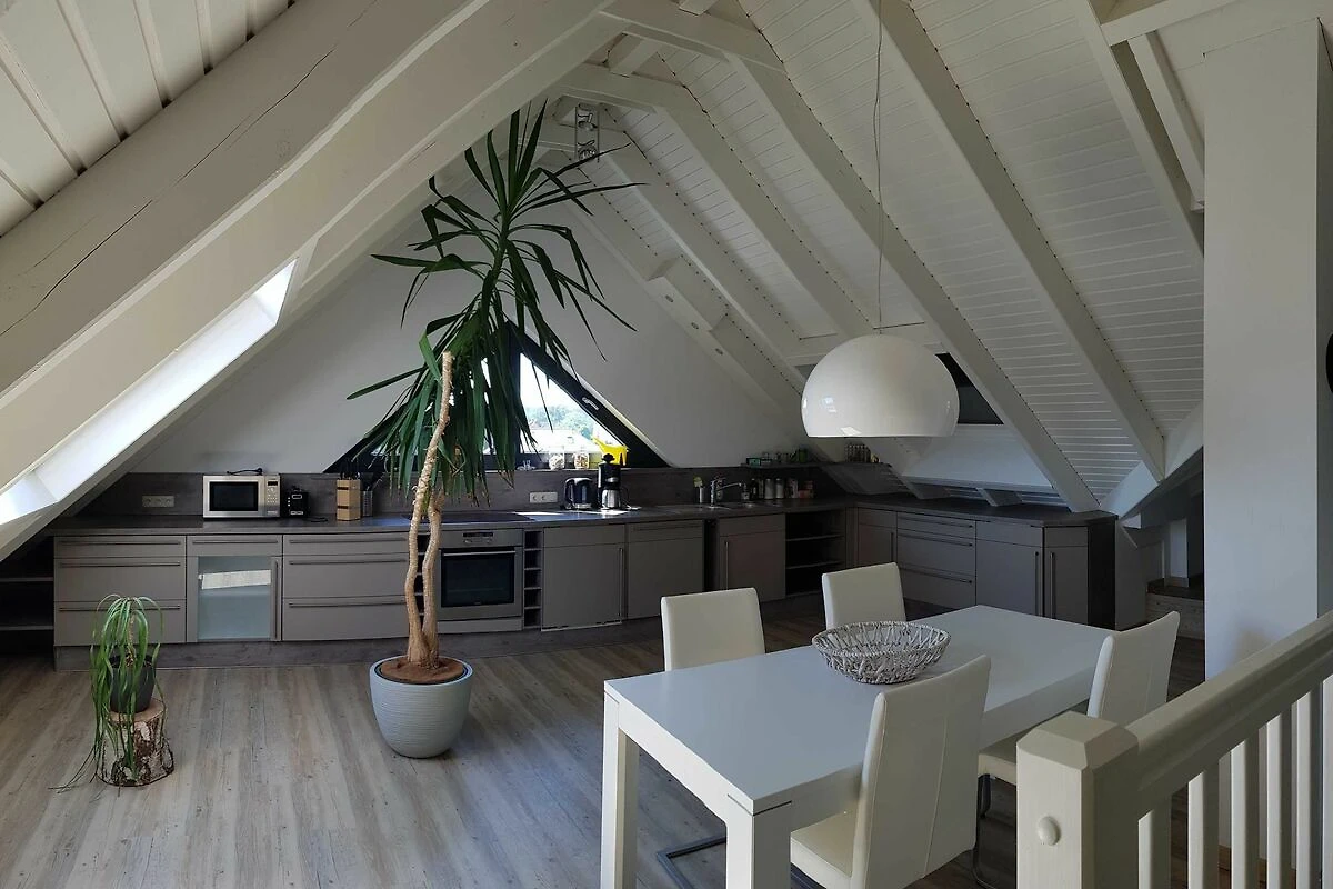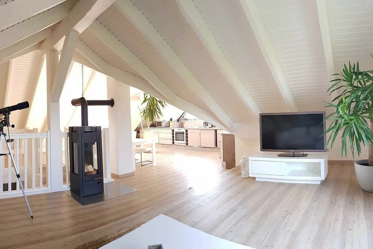 Besuchen Sie uns Ferienwohnungen Urlaubslust Trassenheide. Die 2 Raum Wohnung ist ca. 100 m² gross wurde 2014 fertiggestellt und befindet sich im Dachgeschoss. Sie hat einen grossen kombinierten Wohn-/Essbereich (amerikanische Küche) mit Couch sowie eine hochwertige und voll ausgestattete Küche mit Esstisch für 4 Personen.Für gemütliche Abende steht Ihnen ein Kamin mit 3 Sichtfenstern zur Verfügung. Es gibt ein Schlafzimmer mit einem Doppelbet und grossem Kleiderschrank. Die Couch im Wohnbereich ist für 2 Aufbettungen nutzbar. In der Küche finden Sie einen Induktionsherd mit Backofen, Mikrowelle, Toaster, Kaffeemaschine, Wasserkocher, Kühlschrank und Spülmaschine. Das Bad/WC ist mit einer grossen Dusche, einem Fön und Handtuchhaltern ausgestattet.