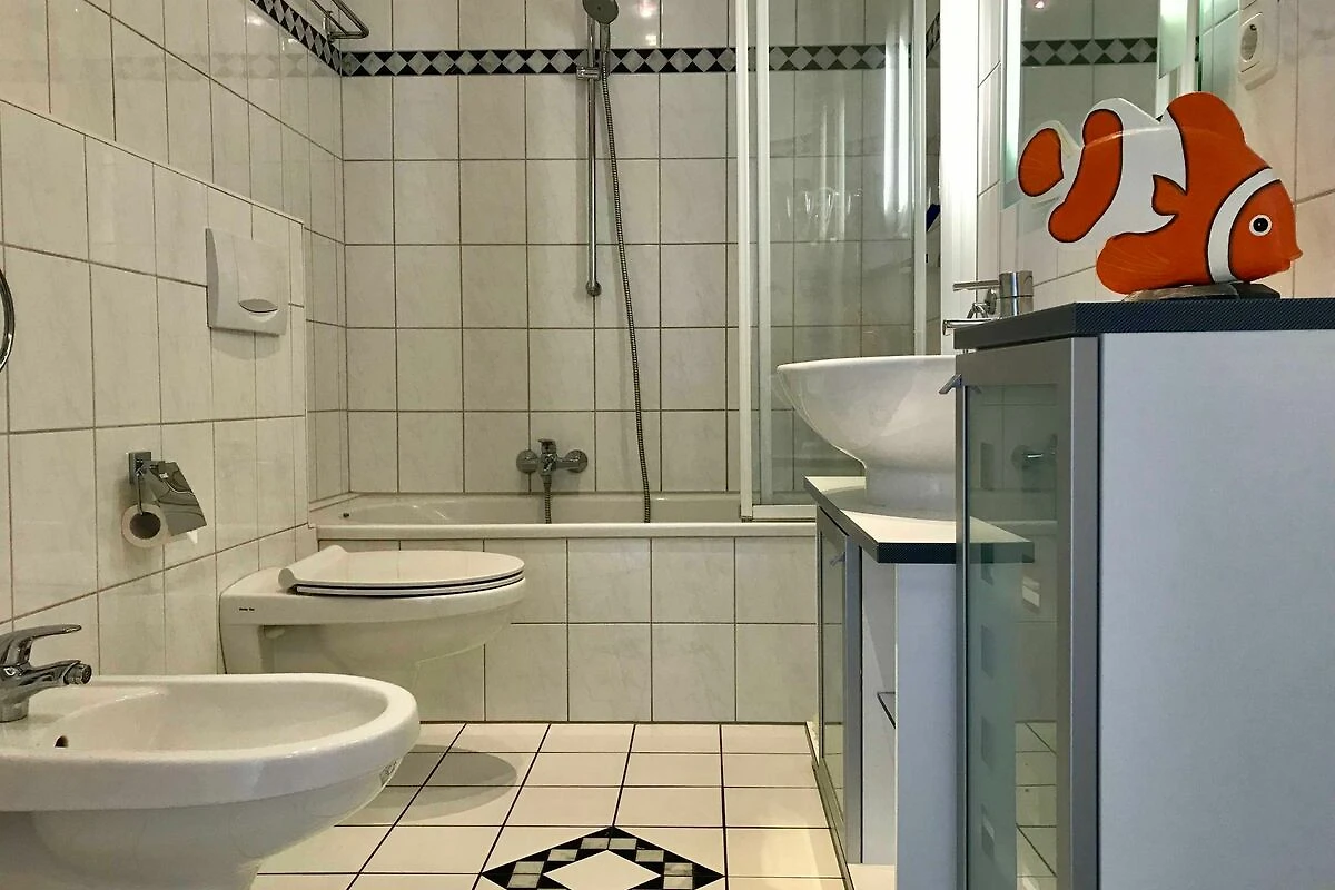 Fahrräder können im Keller des Hauses abgestellt werden. Der Wellnessbereich des angrenzenden Strandhotels kann gegen Gebühr genutzt werden, ebenso kann dort Frühstück angefragt werden.
