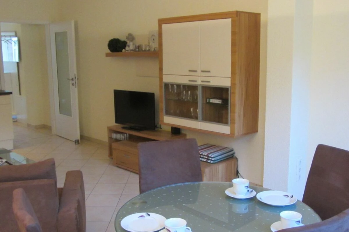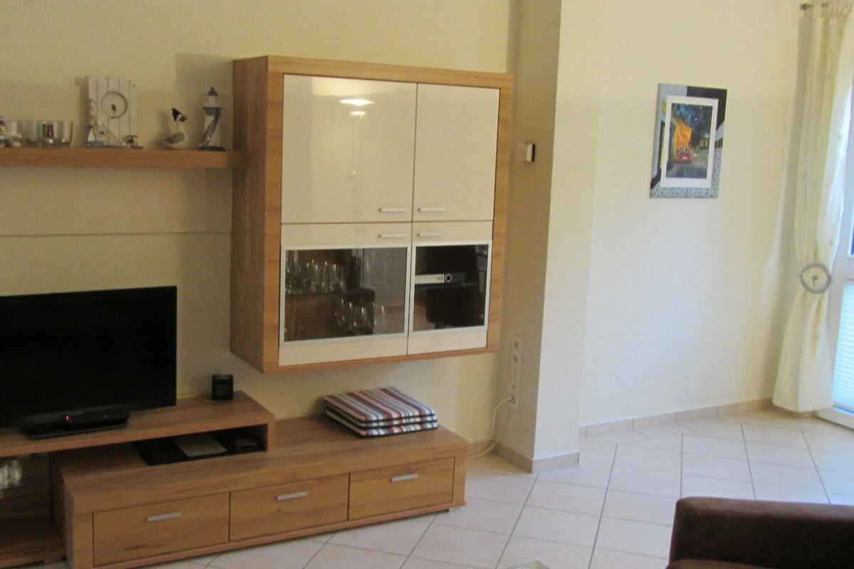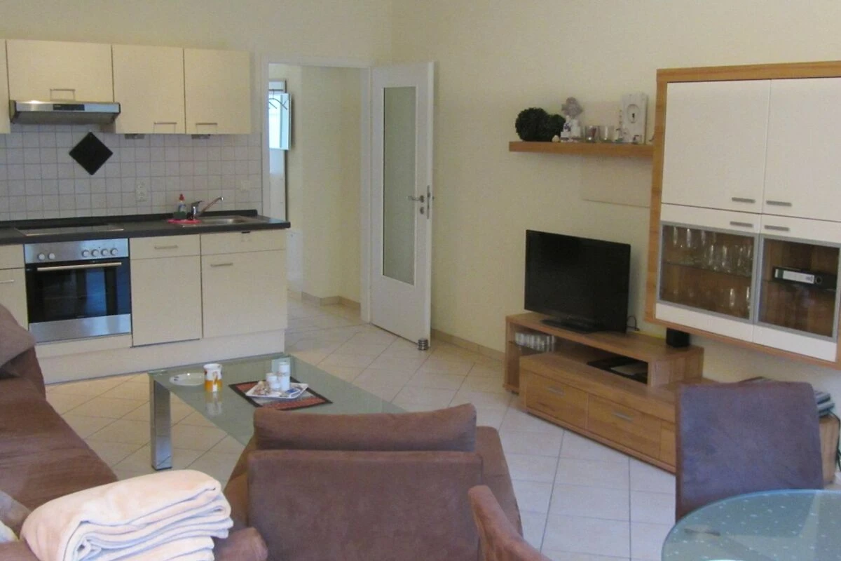 Moderne Erdgeschosswohnung mit grosser Terrasse, eigener Gartenanteil von 44m² und PKW Stellplatz. Die Wohnung ist modern eingerichtet mit Fussbodenheizung, TV, Terrassenmöbel, Einbauküche mit Ceranherd, Backofen, Tiefkühlfach, Gläser, Besteck und Geschirr. Für die kleinen Gäste steht ein Kinderreisebett und ein Hochstuhl kostenfrei zur Verfügung.