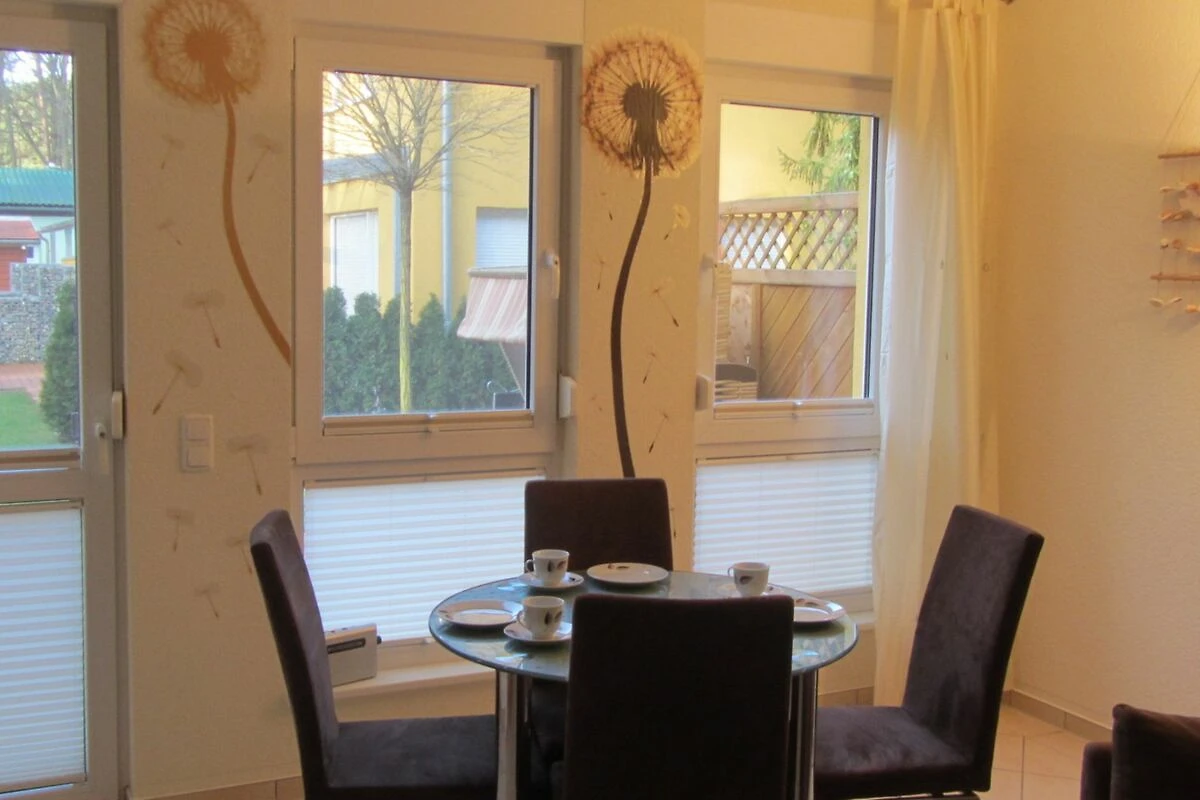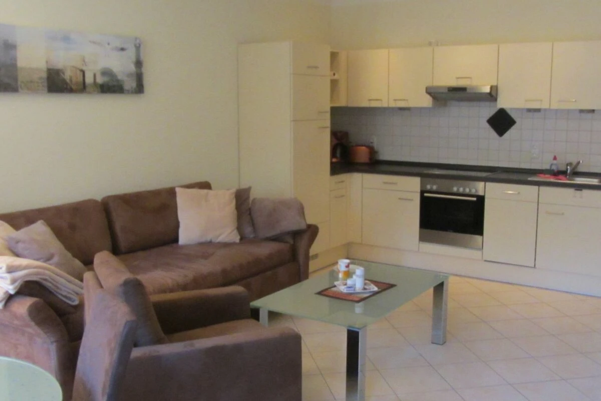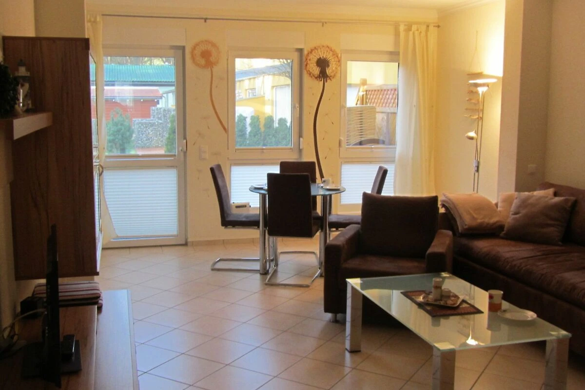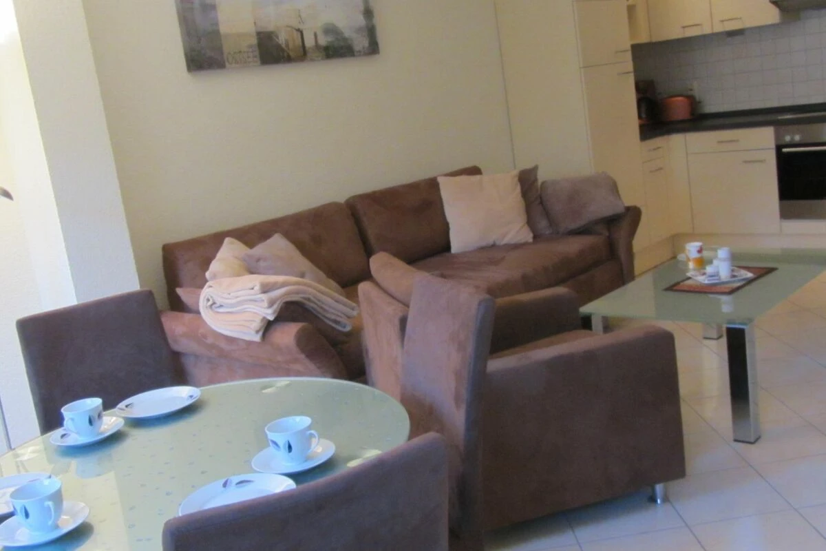 Moderne Erdgeschosswohnung mit grosser Terrasse, eigener Gartenanteil von 44m² und PKW Stellplatz. Die Wohnung ist modern eingerichtet mit Fussbodenheizung, TV, Terrassenmöbel, Einbauküche mit Ceranherd, Backofen, Tiefkühlfach, Gläser, Besteck und Geschirr. Für die kleinen Gäste steht ein Kinderreisebett und ein Hochstuhl kostenfrei zur Verfügung.