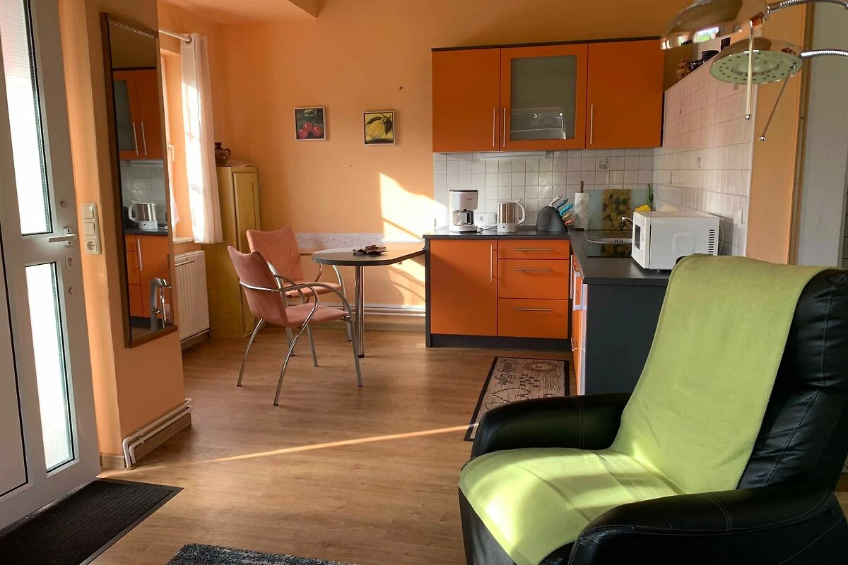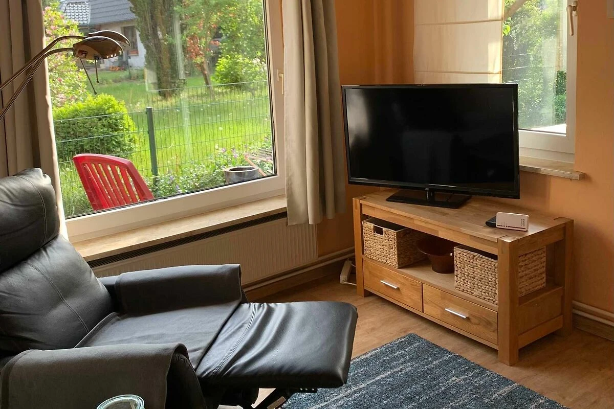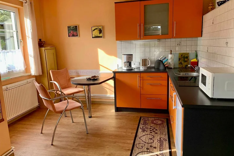 Der Wohnraum ist ausgestattet mit zwei Relaxsesseln und einem Sideboard, einem Flachbild-Fernseher und einem Radio. Die offene Küche verfügt über ein Cerankochfeld, eine Mikrowelle, eine komplette Ausstattung mit Kaffeemaschine, Wasserkocher und Toaster und eine gemütliche Sitzgruppe. Der Schlafraum ist teilweise offen zum Wohnraum und ist mit einem Doppelbett (1,70 x 1,90) mit verstellbaren Lattenrosten, einem Schrank und zwei Nachtschränken gut geeignet für zwei Personen. In Bad finden Sie Dusche und WC. Auf der sonnigen Terrasse mit Sitzmöbeln, sowie Liegen und Sonnenschirm auf dem liebevoll gestalteten Gartengrundstück können Sie den Urlaub in vollen Zügen geniessen.