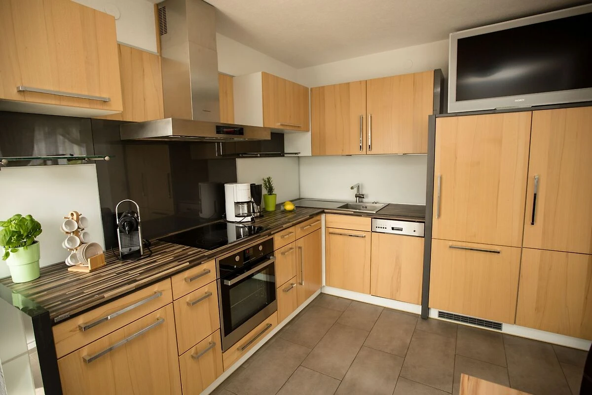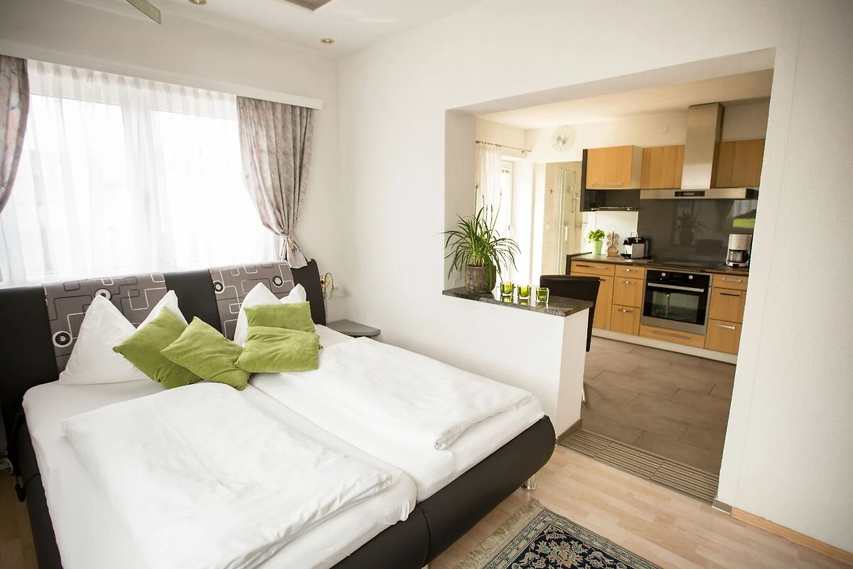 Dieses Apartment bietet Ihnen mit einem sehr hellen und freundlichen Ambiente Erholung auf 40 m². Vom grossen Wohn- Schlafraum mit einem Doppelbett, grossen Flat-Screen TV (40 Zoll), Schrankverbau mit Stereoanlage, Safe geniessen Sie einen Blick Richtung Süden in den Garten. Der angeschlossene offene Küchenbereich mit neuer Designerküche und Top Ausstattung ist mit dem Balkon Richtung Westen (Abendsonne) gelegen. Hier finden Sie Ihre persönliche Erholung.