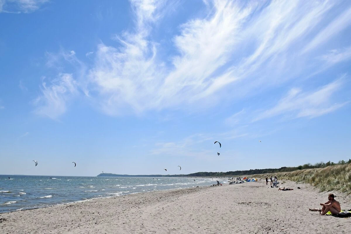 Traumhafte feinsandige Badestrände, ruhige Naturstrände, hohe Dünen, schattiger Kiefernwald, blühende Salzwiesen und sanfte Grashügel.