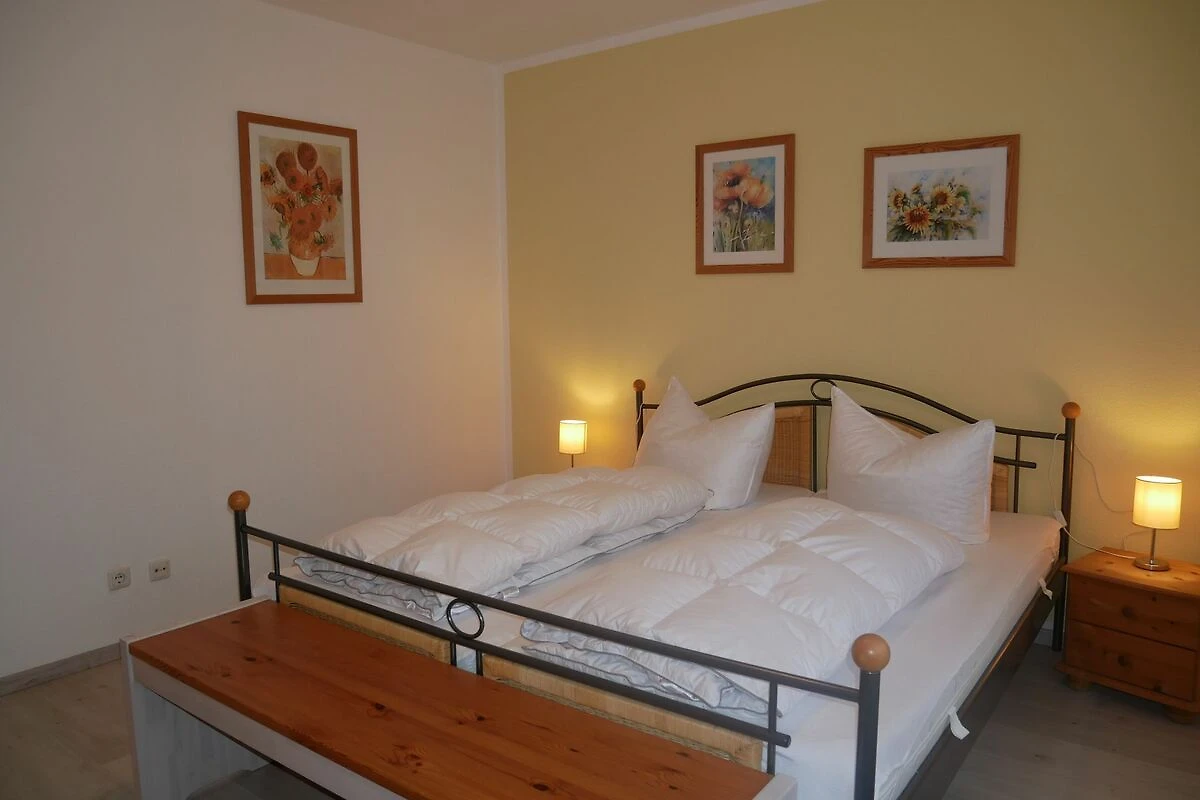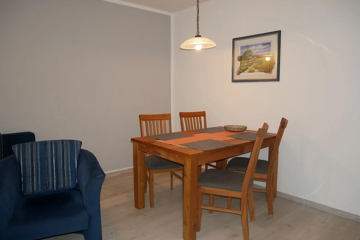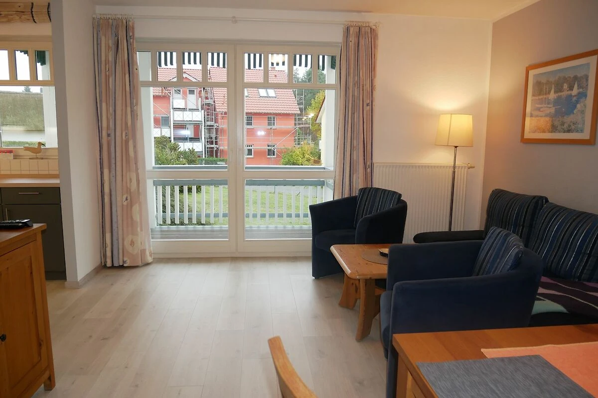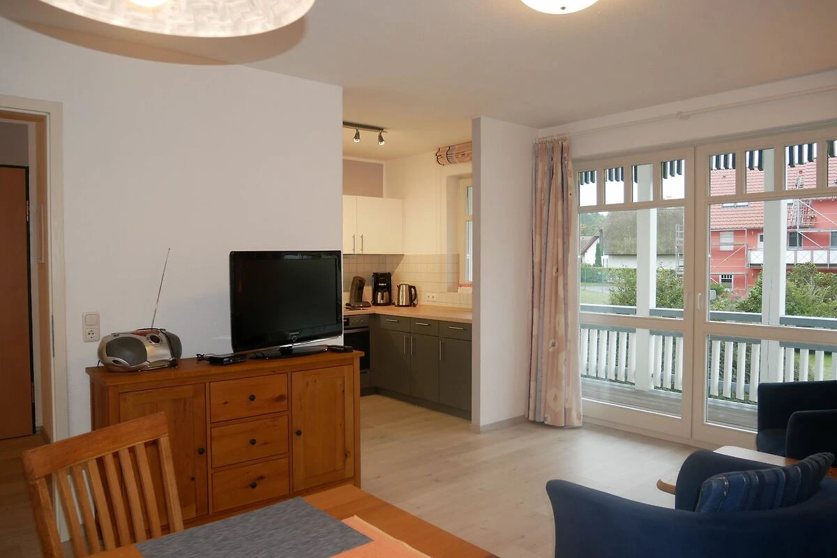Die gemütliche 2-Raum-Nichtraucher-Ferienwohnung ist ca. 53qm gross und für bis zu 4 Personen geeignet. Sie befindet sich in der 1. Etage einer Appartementanlage. Der Wohn-Essbreich ist mit Flachbild-TV, Radio, Schlafcouch mit einer Liegefläche von 1,40x2,00m (Aufbettungsmöglichkeit für die 3. & 4. Person), Esstisch und einer offenen Einbauküche mit Cerankochfeld, Backofen, Kühlschrank mit Gefrierfach, Spülmaschine, Kaffeemaschine, Toaster und Wasserkocher ausgestattet. Vom Wohnbereich gelangen Sie auf den grossen, sonnigen Südbalkon. Im Schlafzimmer befindet sich ein Doppelbett mit einem grossen Kleiderschrank. Das Tageslicht Badezimmer ist mit einer Badewanne mit niedrigem Einstieg, Toilette und Waschbecken ausgestattet.