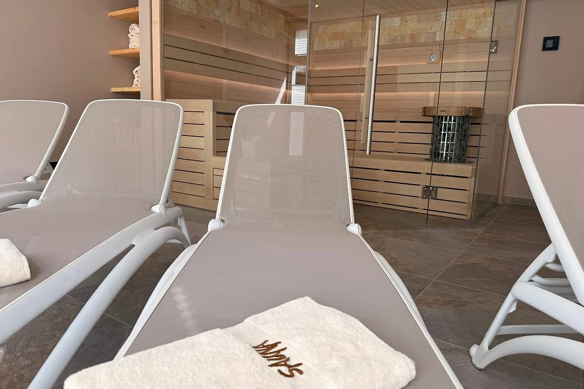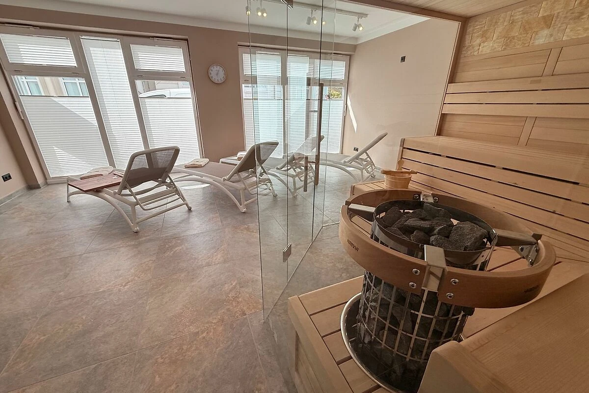 NEU 2026: Eine grosse Sauna im Erdgeschoss der Villa mit Ruheraum und Sanitäranlagen steht unseren Gästen zur kostenfreien Nutzung zur Verfügung.