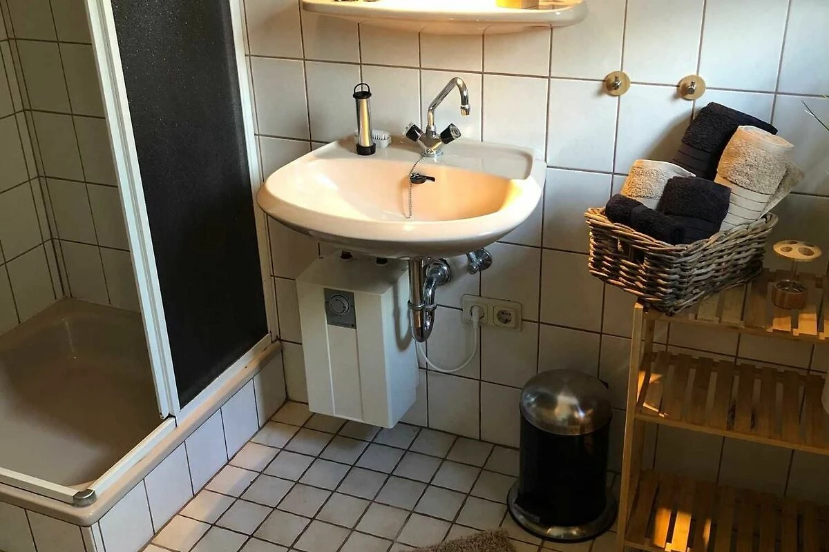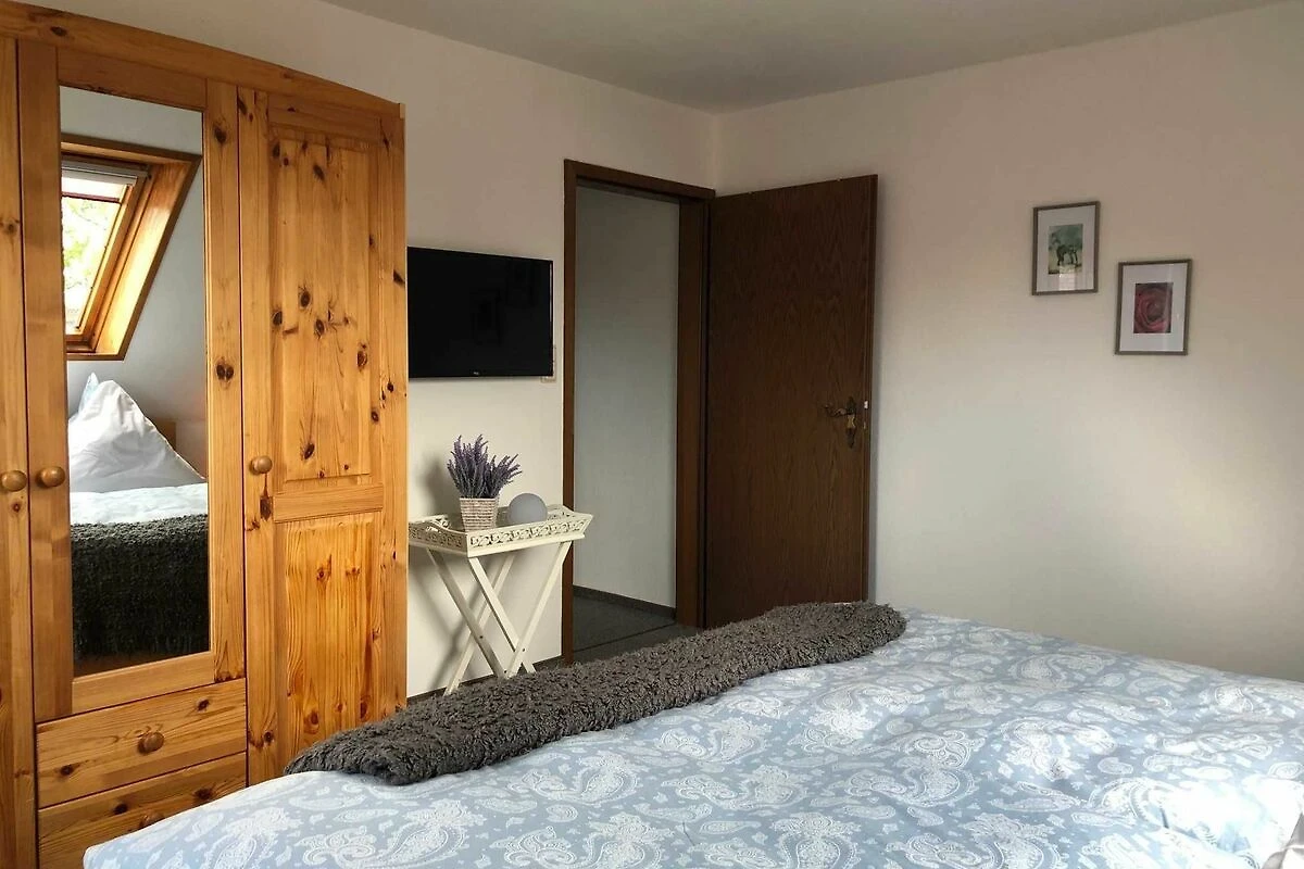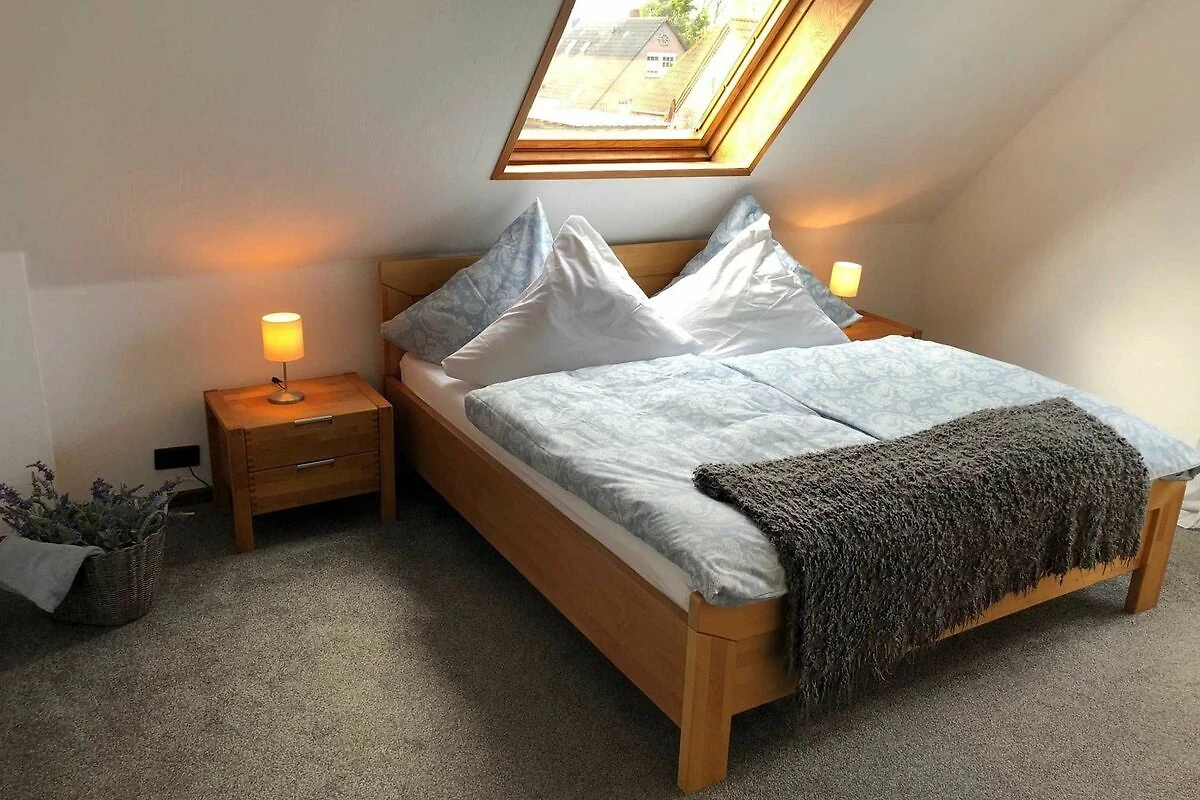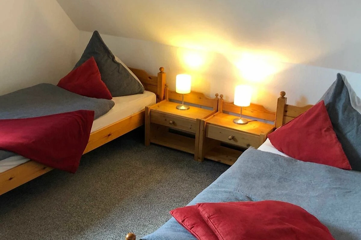 Im Obergeschoss befindet sich ein Schlafzimmer mit Doppelbett, ein Schlafzimmer mit zwei Einzelbetten.