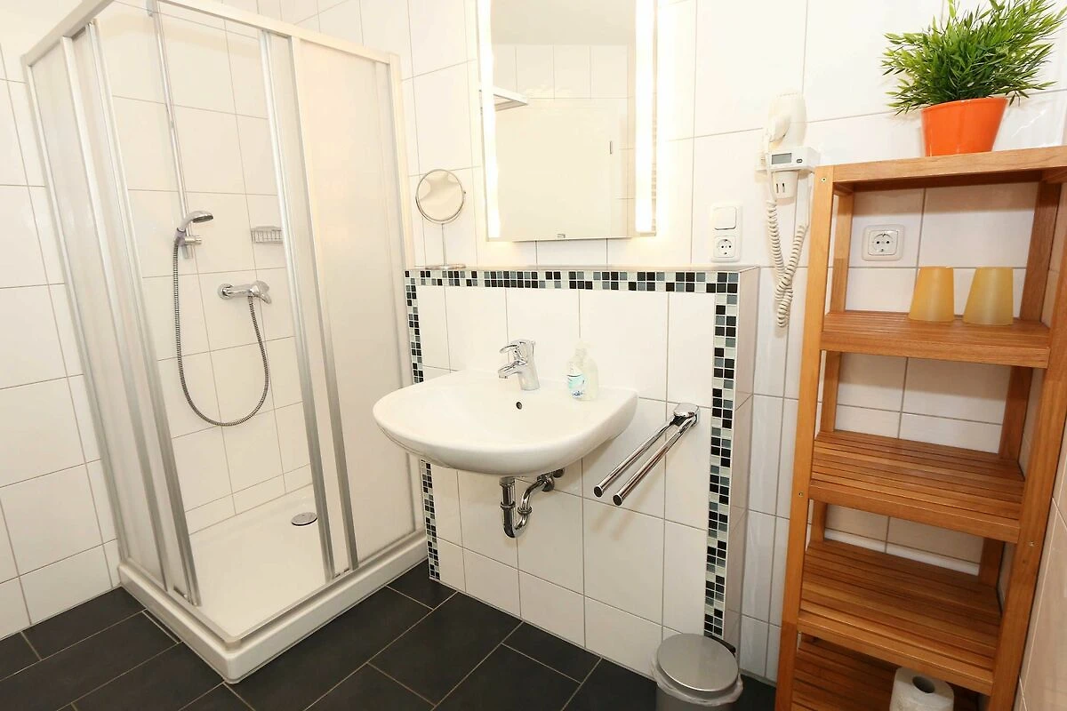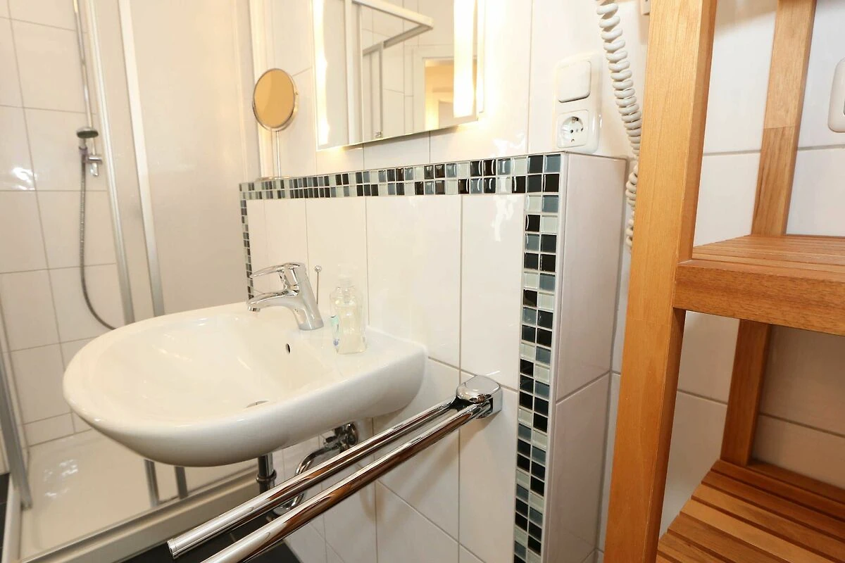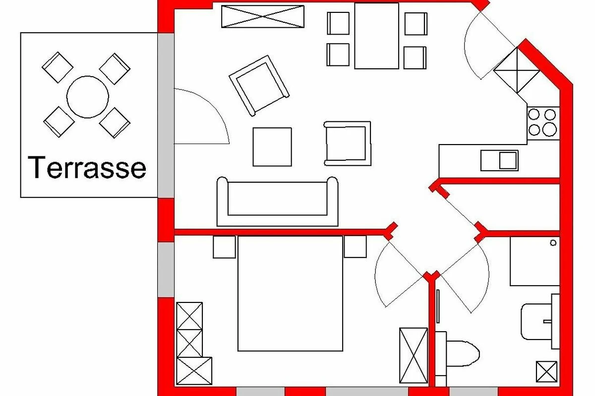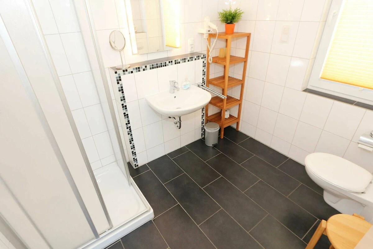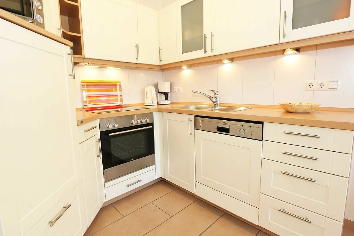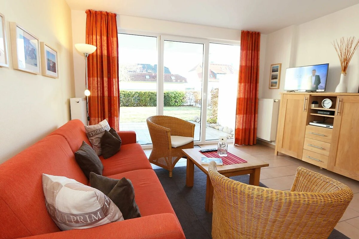 Sie wohnen in einer modern und hochwertig eingerichteten 2-Zimmer-Nichtraucherwohnung. Bei einer Wohnungsgrösse von ca. 50m² haben 2 bis 4 Personen ausreichend Platz. Vom Eingangsbereich aus gelangen Sie in einen grosszügigen, lichtdurchfluteten Wohn- und Essbereich. Der Wohnbereich ist mit einem Sideboard, Leselampe, Smart-TV, DVD-Player, Stereoanlage, einer gemütlichen Couch (hochwertige Ausziehfunktion mit separater Matratze 1,60 m x 2,00 m) mit Couchtisch ausgestattet. Auch auf einen Internetanschluss (WLAN) müssen Sie im Urlaub nicht verzichten. Dieser ist für unsere Gäste inklusive! Die komplett ausgestattete Küchenzeile wird durch einen Geschirrspüler, Backofen, Mikrowelle, Kühlschrank mit Gefrierfach, Kaffeemaschine, Toaster, Wasserkocher, Eierkocher, kleine Küchenutensilien sowie durch eine Essgruppe mit 4 Stühlen abgerundet. Angrenzend liegt das Schlafzimmer mit einem Doppelbett (1,80m x 2,00m, 7 Zonen-Kaltschaummatratze), verstellbare Lattenroste, einem geräumigen Kleiderschrank, Insektenschutzgitter, LCD-TV und zusätzlicher Kommode. Für einen ruhigen Schlaf können Sie den Raum abdunkeln. Das Badezimmer ist mit Dusche, Waschtisch, WC, Kosmetikspiegel, Fön, Insektenschutzgitter und beheizbaren Handtuchhalter/Fussbodenheizung sowie einem Einbauradio ausgestattet. Im separaten Abstellraum finden Sie einen Wäscheständer, Bügeleisen sowie ein Bügelbrett, Reinigungsutensilien und ein Schuhschrank. Auf der teilweisen überdachten Terrasse (Osten), die sowohl vom Wohnbereich wie auch vom Schlafzimmer erreichbar ist, befindet sich eine Sitzgruppe und eine Sonnenliege. Hier können Sie den angrenzenden Garten von ca. 60m² frei nutzen. Haustiere sind nicht erlaubt. Für unsere kleinen Gäste steht Ihnen ein Kinderreisebett (ohne Matratze, ohne Bettinlett) inklusive zur Verfügung. Einen PKW-Stellplatz (Nr.1, Einfahrtshöhe 2,10m) finden Sie in der Tiefgarage des Hauses. Ihre geliehenen oder auch mitgebrachten Fahrräder können Sie im eigenen abschliessbaren Kellerraum unterstellen. Im Gemeinschaftskeller können Sie gegen einen Aufpreis die gemeinschaftliche Waschmaschine und den Trockner nutzen. Die Wertmarken können Sie auf Nachfrage während Ihres Urlaubes erwerben. Die Erstausstattung eines Wäschepaketes (komplette Bettwäsche, 1 Duschhandtuch, 1 kleines Handtuch) können Sie bis 14 Tage vor Anreise gegen einen Aufpreis dazu buchen oder durch eigene ergänzen. Ab 2 gebuchten Paketen erhalten Sie einmalig 1 Geschirrhandtuch und 1 Duschvorleger hinzu.