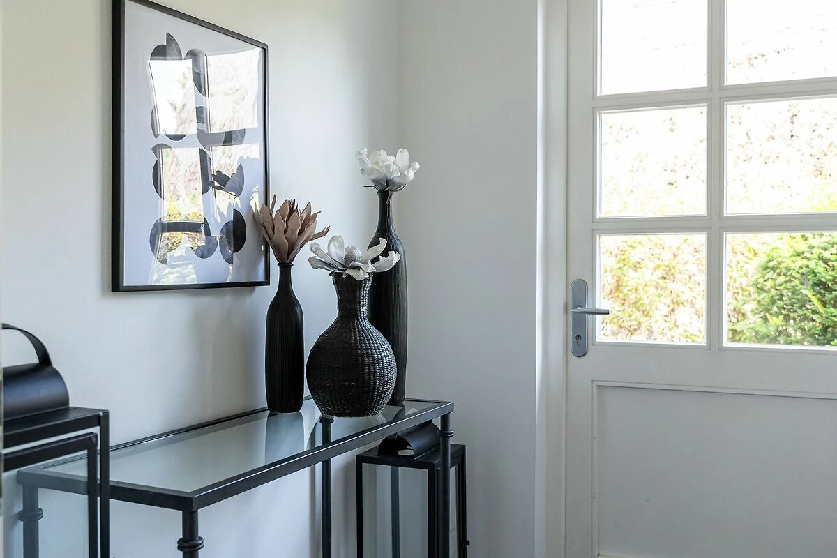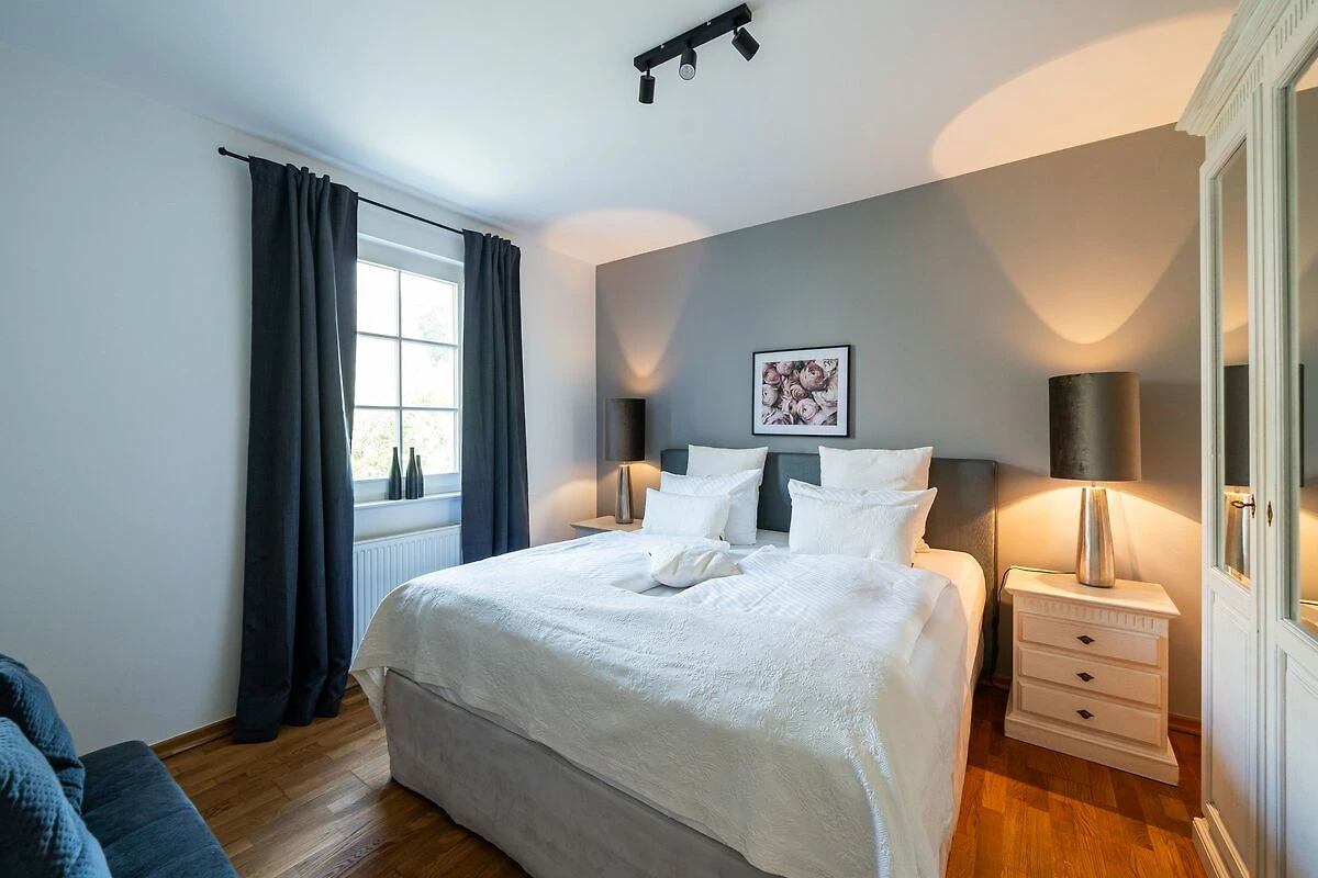 Alle Räume sind hochwertig und geschmackvoll eingerichtet und wirken hell und freundlich durch die grossen Sprossenfenster. Die Küche ist ausgestattet mit einem Geschirrspüler und einem Herd mit Backofen. Die Wohnung verfügt über eine TV-SAT-Anlage. In der Wohnküche können Sie es sich am Kamin gemütlich machen. In der Wohnung finden 2 - 4 Personen Platz. Es gibt zwei Schlafzimmer mit Doppelbett (1 Bett 140x200). Im Badezimmer finden Sie eine Dusche / WC. Die Terrasse ist nach hinten ausgerichtet und Sie können den Blick ins Grüne geniessen.