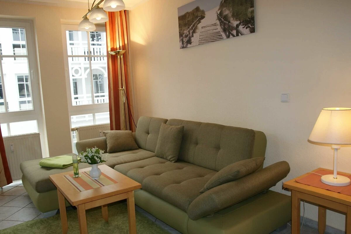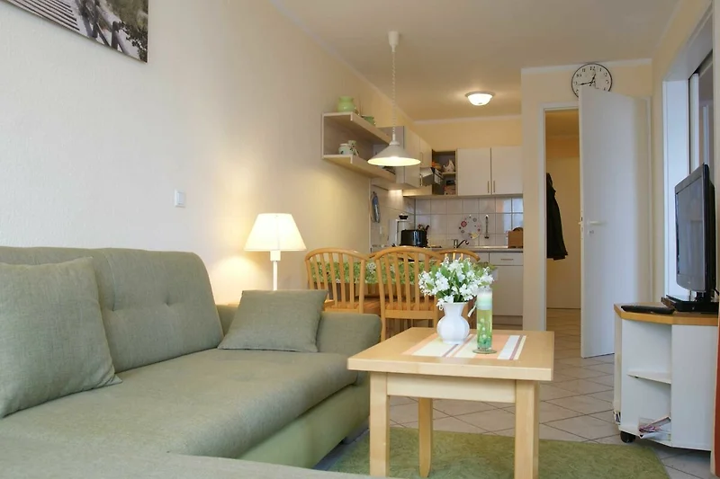 Das helle sonnige Appartementhaus Baabe mit der Nichtraucherwohnung 421 befindet sich zentral in der Anlage Seepark Sellin. Nur 50 m von Ihnen entfernt ist das Erlebnisbad Ahoi zu erreichen, in der Kinder die Wasserspiele mit Aussenbecken und Erwachsene die vielfältigen Saunen bei angenehmen Temperaturen geniessen können. Ebenfalls auf dem Gelände ist ein Kinderspielplatz und ein 18 Loch Minigolfplatz.In den Ladenpassagen des Seeparks Sellin finden Sie Restaurants, ein Eiscafé, einen Fahrradverleih, eine Drogerie, Souvenirs und vieles mehr. Gegenüber ist der grosse EDEKA-Neukauf 1400m² mit Bäckerei und Post/Postbank, Lotto. Die Haltestelle des Rasenden Roland, die bekannte Schmalspurbahn der Insel, erreichen Sie in nur vier Gehminuten, so auch die Haltestelle des Rügener Personennahverkehr und natürlich den herrlich breiten Sandstrand.