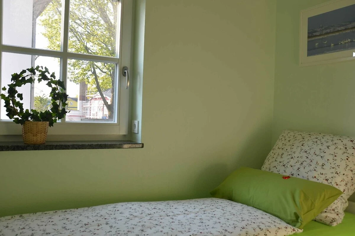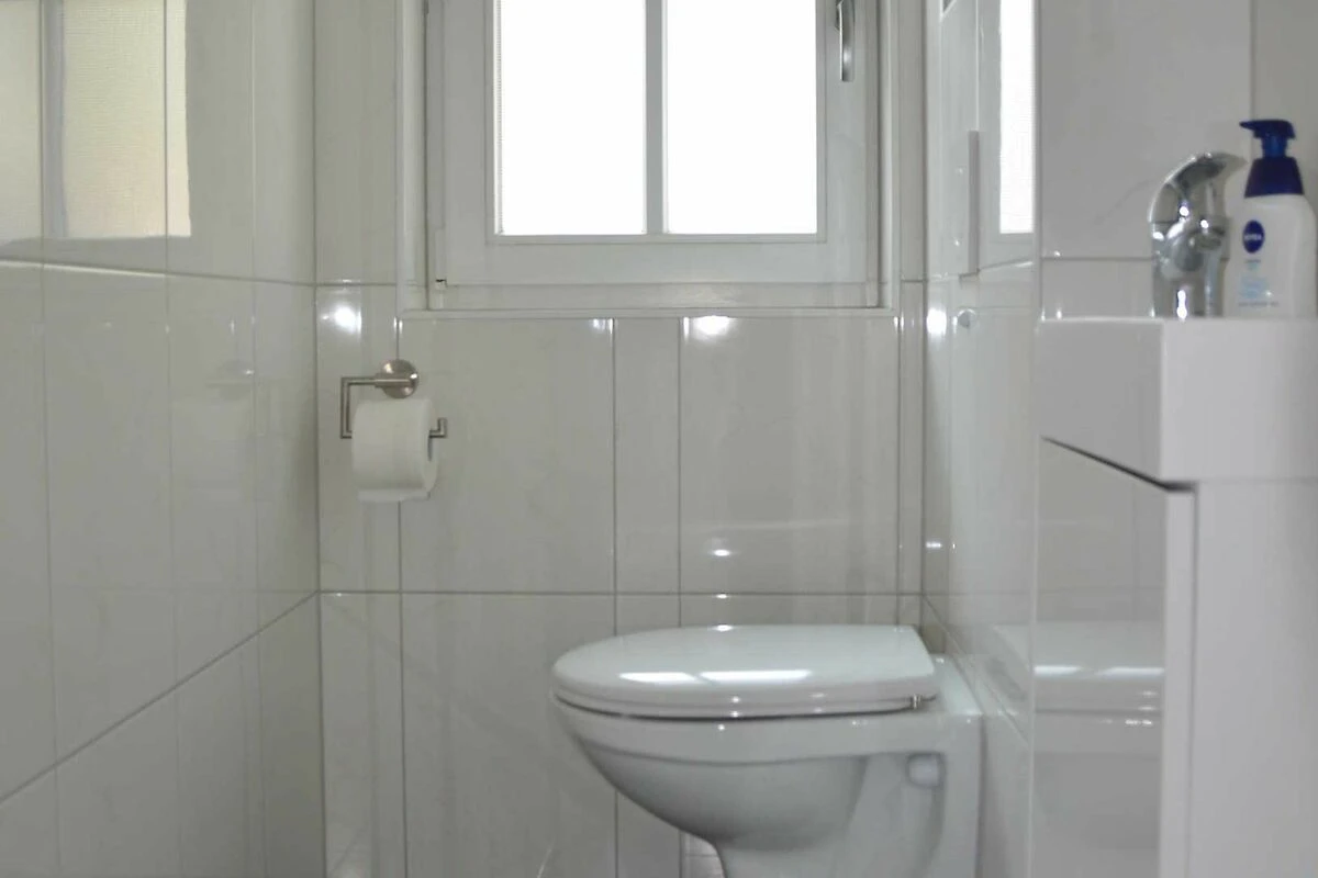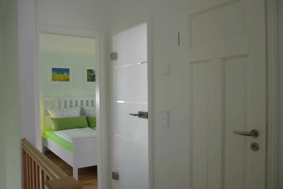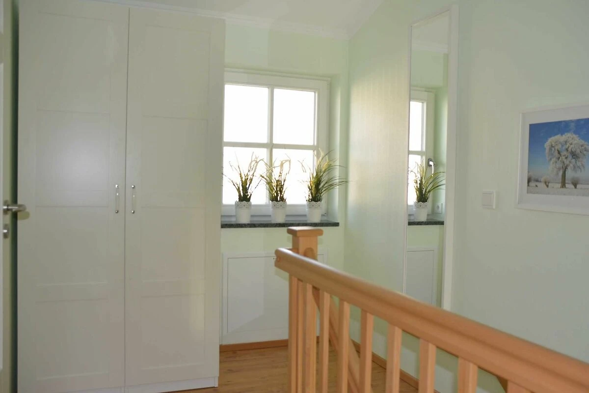 Die Wohnungen 1 und 2 sind insofern behindertenfreundlich ausgestattet, als dass die Treppe zum Obergeschoss geradeausläufig, 1,25m breit, mit sehr bequemen Stufen und sicherem Handlauf ausgestattet ist. Die Eingangstüren und Innentüren dieser Ferienwohnungen sind 1 Meter breit. Die Duschwannen sind bodengleich und mindestens 90cm x 90cm gross.