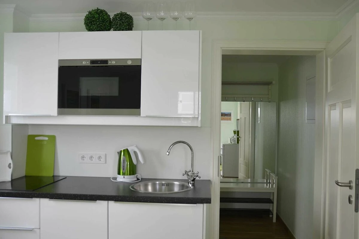 Die besonders ruhige und zugleich zentrale Lage im historischen Teil von Binz, etwa 50m vom „Schmachter See“ und 300 m vom Ostseestrand und der Seebrücke entfernt, ist idealer Ausgangspunkt für alle Spaziergänge und Besorgungen des täglichen Bedarfes im alten Ortskern sowie für Wander-, Fahrrad-, Bus- und Pkw-Touren zu den Sehenswürdigkeiten der Umgebung. Nicht nur in den Zeiten der Hochsaison haben Sie von Binz aus die Möglichkeit, Schiffsausflüge zu anderen Bädern und Attraktionen von Rügen zu unternehmen. Dies ist auch, von anderen Häfen Rügens, zu den Inseln Hiddensee, Usedom, Bornholm und nach Swinemünde möglich. Mit dem „Rasenden Roland“, dem historischen Dampflok-Zug, wird vom Kleinbahnhof aus nicht nur der Weg zum Ziel, sondern Sie erreichen mit ihm auch sehenswerte andere Örtlichkeiten an der Ostküste der Insel. In nächster Nähe laden ein zwei grossartige Kinderspielplätze, die berühmte Bäderarchitektur von Binz, Boutiquen aller Art, mehrere Supermärkte, Bars und Cafés, eine Vielfalt von attraktiven Restaurants sowie eine Fischräucherei in den Dünen mit herrlichem Blick auf die Perlenkette der Bäderstil-Villen an der Promenade, die weitgezogene Bucht, den Strand und das Meer – alles nur wenige Schritte entfernt. Die Freizeitmöglichkeiten werden ergänzt durch einen Tennisplatz im Ort, Minigolf-Platz am Ortsausgang, wo auch in Kürze ein Golfplatz entsteht. Andere Golf-Möglichkeiten auf der Insel und auch ein Reiterhof in nur wenigen Kilometern Entfernung kommen hinzu. Besuchen Sie von Juni bis September die legendären Störtebeker-Festspiele auf der Freilichtbühne von Ralswiek, die für fast jeden Gast der Insel ein „Muss“ sind. Binz bietet darüber hinaus ein umfassendes Unterhaltungsangebot, das für jeden etwas Passendes bereithält, und eine Reihe von Veranstaltungen sportlicher Art insbesondere am Strand. Das 2013 eröffnete Naturerbe Zentrum sowie das Jagdschloss mit weitem Rundum-Blick über die Insel sind nach nur wenigen Kilometern auch zu Fuss gut erreicht und bieten spektakuläre Blicke über die Insel und das Meer. Der (DB-) Grossbahnhof von Binz wird nach etwa 600m erreicht und verbindet über IC Züge mit fernen Destinationen. Darüber hinaus gibt es sogar zeitweise ICE-Verbindungen über Berlin nach Süden und Südwesten Deutschlands. Die Autobahn A20 ist über eine Schnellstrasse mit Stralsund verbunden. Nach Überqueren der historischen Ziegelgrabenbrücke oder der neuen Rügenbrücke erreichen Sie Ihre Traumwohnung über Bergen - oder Sie nutzen die besonders reizvolle Alleenstrasse über Garz und Putbus, die in der Regel ausserdem staufrei ist.