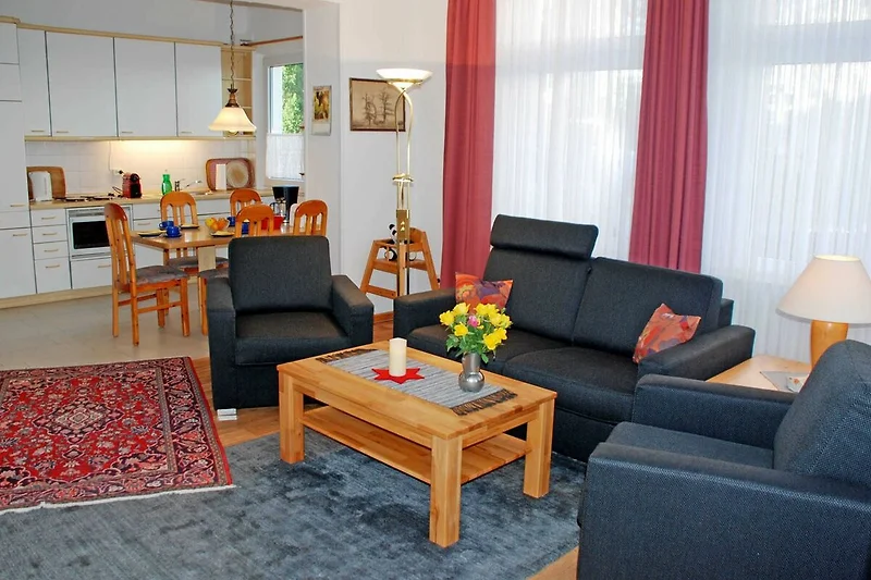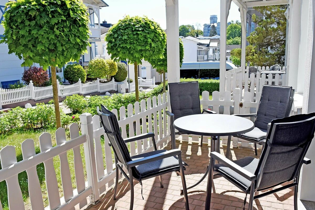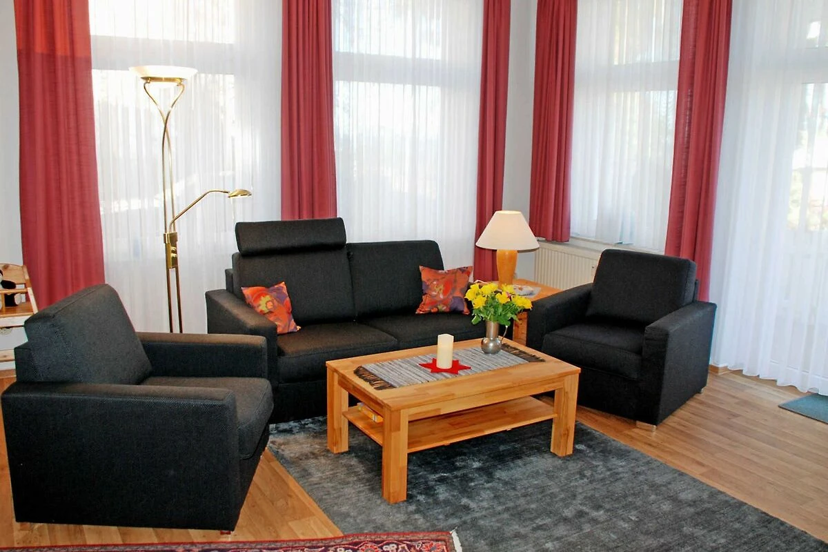Das in 2016 vollständig und hochwertig sanierte Ferienappartement (separater Eingang, 84 qm, 1 Wohnzimmer, 2 Schlafzimmer, Küche, Bad mit Dusche und WC, WLAN-Internet, max. 4 erwachsene Gäste und ein Kind im Kinderbett) befindet sich umgeben von einer gepflegten Anlage, im Erdgeschoss des Appartmenthauses am Ende einer ruhigen Sackgasse. Das Appartement verfügt über grosse Fensterfronten, grosszügige Deckenhöhe und eine schöne Terrasse mit Vorgarten.Das Grundstück liegt ruhig und bietet unseren Gästen seitlich einen tollen Seeblick bis zu den berühmten Kreidefelsen auf Jasmund. Bis zum kilometerlangen, feinsandigen Badestrand mit der Seebrücke an der Ostsee sind es nur ca. 300 m. Das Ostseebad Göhren gehört zum UNESCO Biosphärenreservat Südost-Rügen mit herrlicher, unverbrauchter Natur. In der näheren Umgebung gibt es zahlreiche Rad- und Wanderwege. Das Ortzentrum des Ostseebades erreichen Sie in ca. 200 m und der Kleinbahnhof für den „Rasenden Roland“ nach ca. 400 m entfernt. Im Zentrum laden diverse Geschäfte, Läden, viele Restaurants zum Verweilen ein.