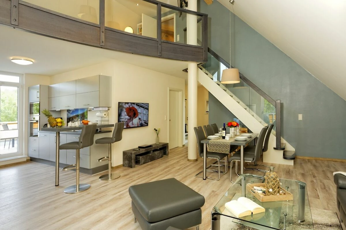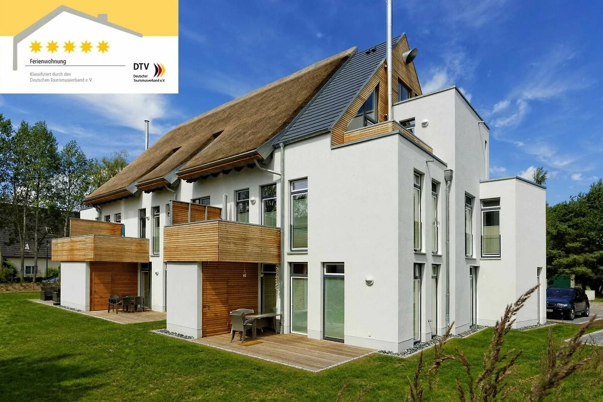 VAKON Ostseeland in Karlshagen ist eine in Mecklenburg-Vorpommern einzigartige 5-Sterne-Ferienhaus-Anlage bestehend aus 42 grosszügigen, schilfrohrgedeckten Strandhäusern mit bis zu 220 m² Wohnfläche und 26 Ferienwohnungen mit bis zu ca. 180 m² Wohnfläche. Dieses exklusive, 2016 fertiggestellte Appartementhaus mit 8 Wohneinheiten ist ca. 4 Gehminuten vom Strand entfernt.