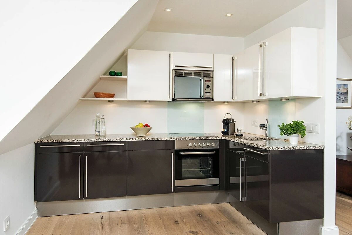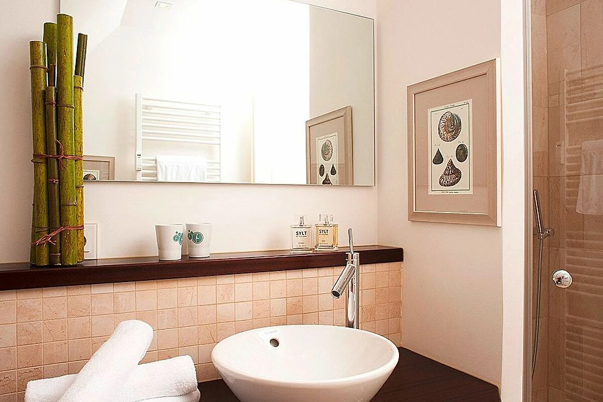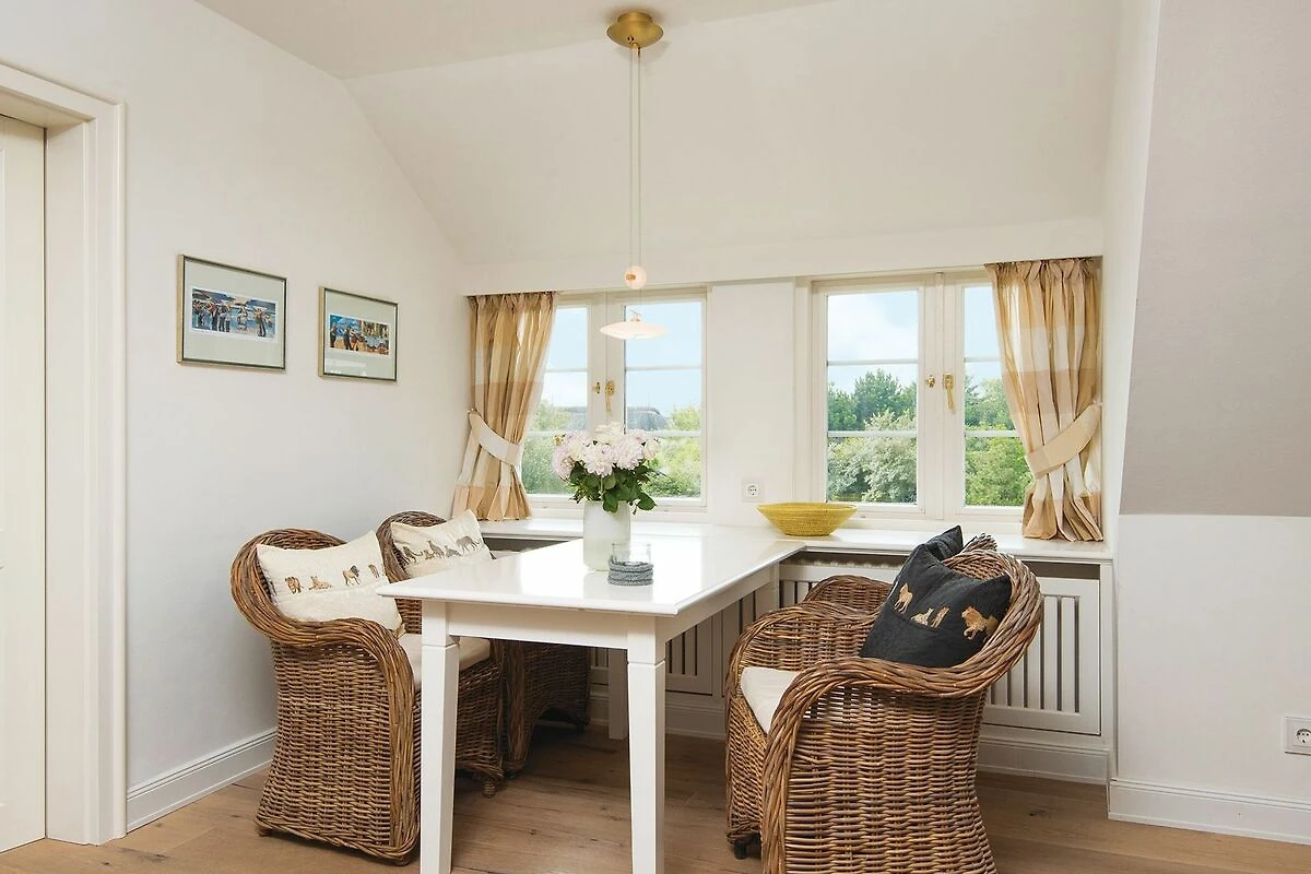 Entspannte Behaglichkeit in zentraler Lage: Die 2-Zimmerwohnung im ersten Stock eines modernen Ferienwohnhauses unter Reet liegt im Herzen des Ortes Kampen, ist aber dennoch alles andere als hektisch. Frische Brötchen und Lebensmittel gibt es im Haus nebenan. Restaurants, Boutiquen und Kampens gesellschaftliches Leben befinden sich direkt um die Ecke. Das Wohn-Esszimmer mit seiner offenen Küche und das geschmackvolle Duschbad punktet durch sein Ambiente im modernen Landhausstil. Das helle Doppelschlafzimmer bietet einen Blick in die Idylle von Kampens Gärten.