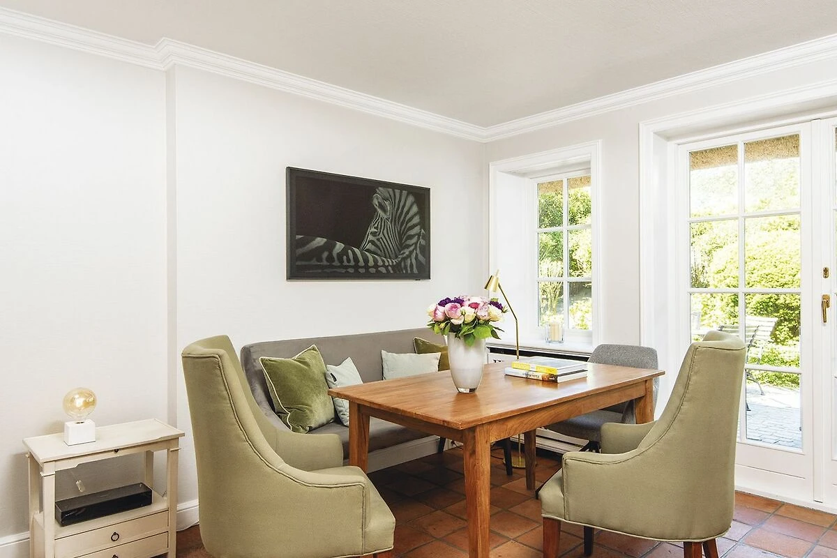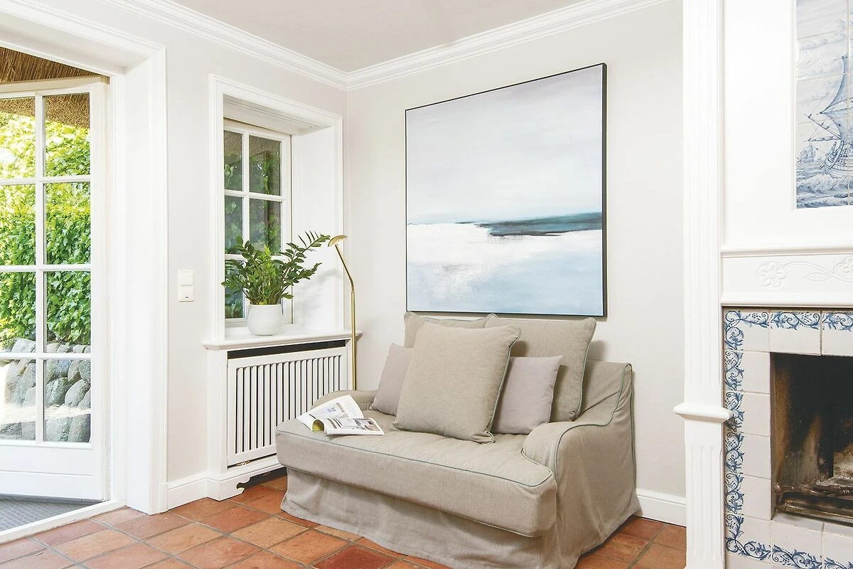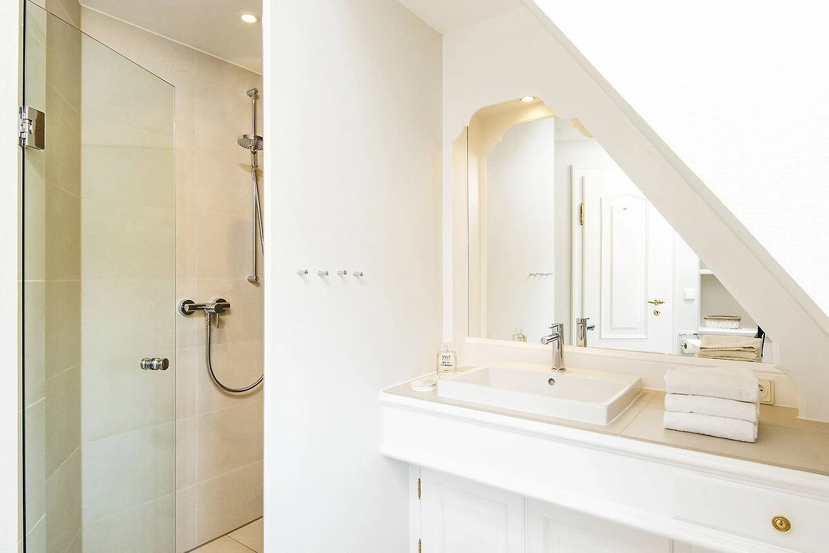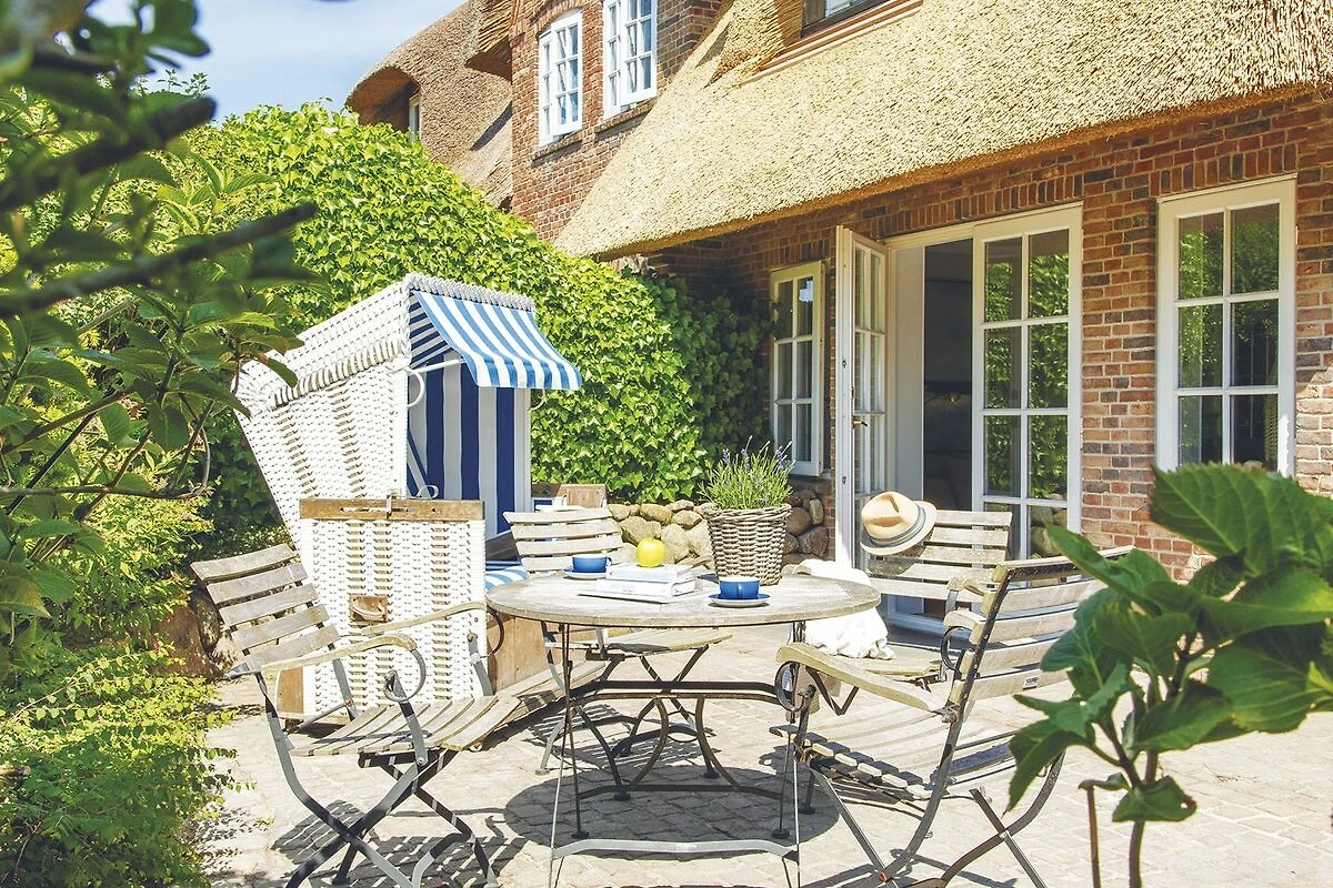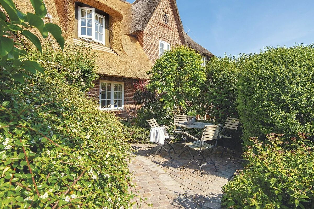 Gemütliches Ambiente nur einen kleinen Fussmarsch von Kampens Zentrum entfernt und alles, was vier Personen zum Wohlfühlen brauchen. Schon der Weg zum Haus führt Sie durch einen romantisch eingewachsenen Gang. Vom kleinen Flur gelangt man direkt in den behaglichen Wohnbereich mit Kamin und Essecke für Vier, offener Küche und Zugang zur Terrasse gen Westen samt Strandkorb. Das Hausteil hat ein Doppelschlafzimmer mit Duschbad im Obergeschoss und ein weiteres Doppelschlafzimmer mit Wannenduschbad im Untergeschoss. Das gesamte Hausteil ist mit Fliesen und Laminat ausgelegt.