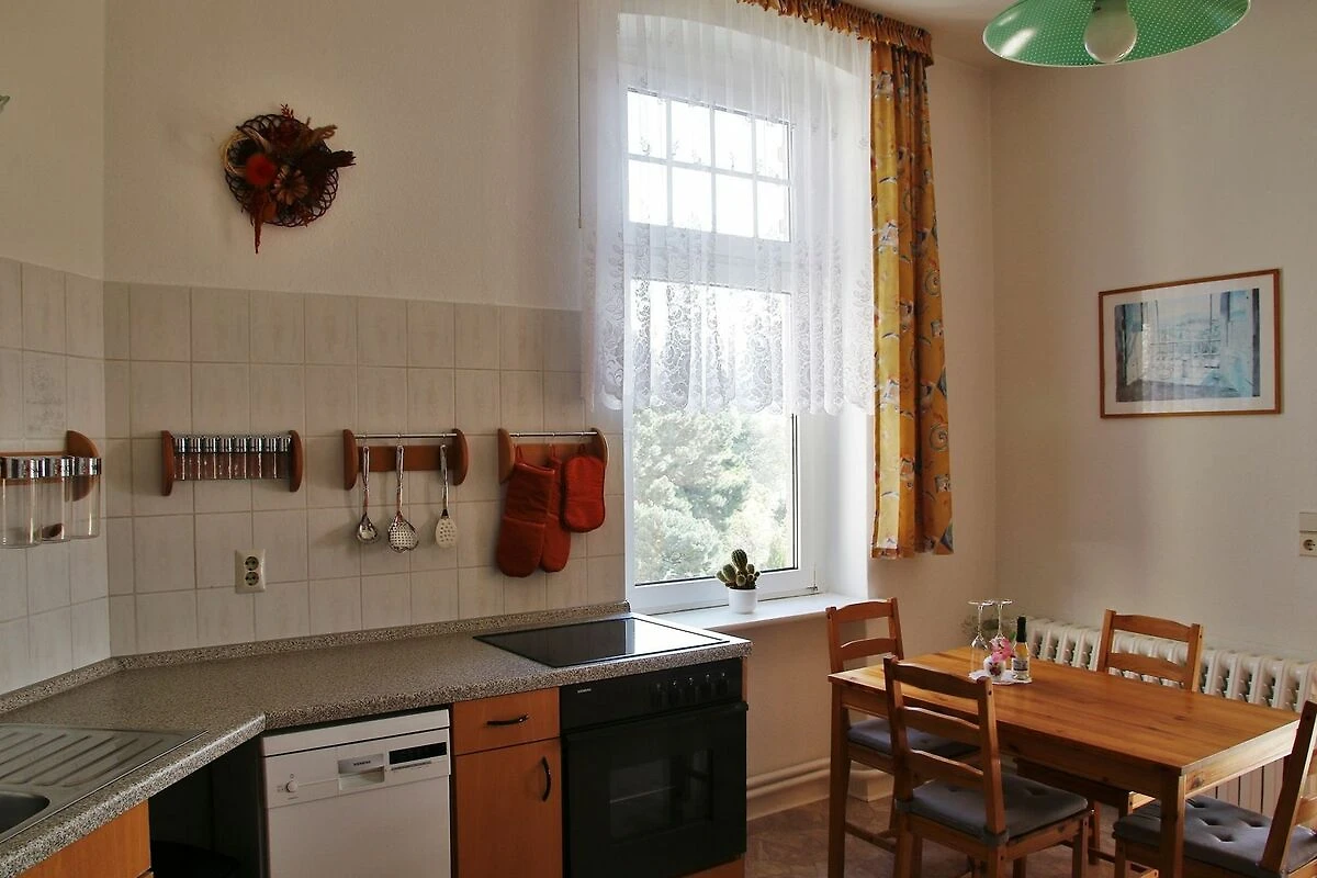 Geniessen Sie die schönsten Tage im Jahr in der Ferienwohnung in der Inselstadt Malchow, direkt am See. Die Wohnung ist 80 m² gross, befindet sich im 1. OG und bietet Platz für 2 Personen. Im Schlafzimmer befindet sich ein Doppelbett, ein Schrank und Nachttische. Das Wohnzimmer ist ausgestattet mit einer Sofaecke, einer Anbauwand, TV mit Flachbild und einem Couchtisch. Eine separate Küche mit Essecke und Geschirrspüler sowie ein Bad mit Badewanne und WC ist vorhanden. Das Objekt ist eine liebevoll eingerichtete, grosszügige und sehr gut ausgestattete FEWO. Besondere Highlights sind eine sehr grosse Auswahl an Büchern, Schaukel, Gartenmöbel und Badeleiter.