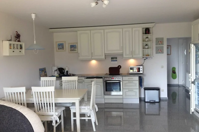 Die grosszügige, modern eingerichtete Wohnung mit der Nummer 53 liegt im EG und verfügt über einen offenen Wohn- und Küchenbereich, 2 Schlafzimmer (Doppelbett 180/200) und 1 Bad. Vom Wohnungseingang kommen Sie durch den Flur direkt in den offenen Wohn- und Essbereich. Im Küchenbereich befindet sich eine voll ausgestattete Küchenzeile mit Geschirrspüler, Herd & Backofen, Microwelle, Toaster, Kaffeemaschine, Geschirr uvm.. Dazu gehört ein grosser Esstisch mit 6 Stühlen. Im Wohnbereich finden Sie eine bequeme Schlafcouch mit Sessel, einen Couchtisch, Fernseher und DVD-Player. Die grosse Fensterfront grenzt an eine 15 qm grossen Terasse und die anschliessende Wiese. Von hier kann man die Morgensonne und einen wunderschönen Blick auf den Deich geniessen. Zur Terrasse gehören Terrassenmöbel, Sonnenliegen und ein Strandkorb. Auch am Strand steht Ihnen von Mai bis September (Wetterabhängig) ein Strandkorb kostenfrei zur Verfügung.