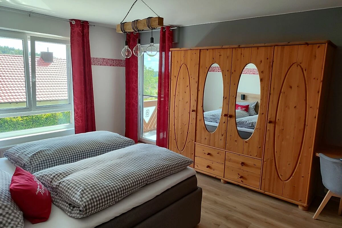 Zudem stellen wir unseren Gästen separate Schlafzimmer mit bequemen Betten, TV und Arbeitsplatz zur Verfügung: Beide Schlafzimmer sind mit je zwei Einzelbetten ausgestattet, die zum Doppelbett zusammengeschoben werden können.. Ein Schlafzimmer mit Zugang zum Balkon,
