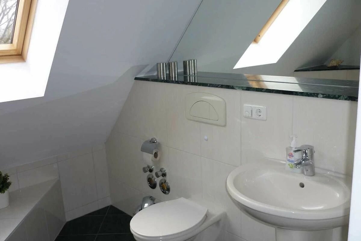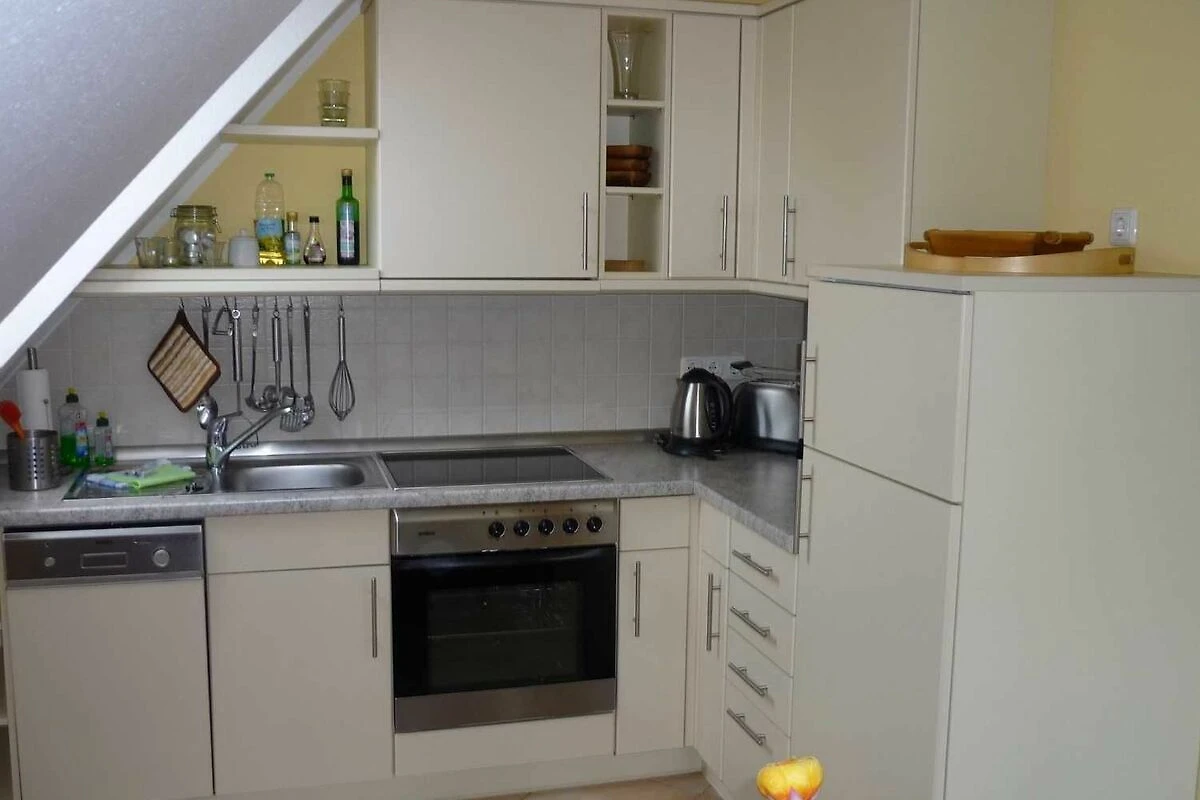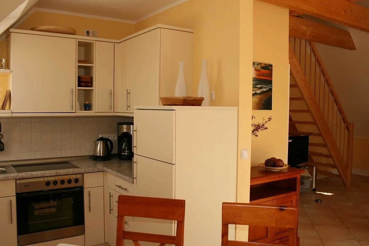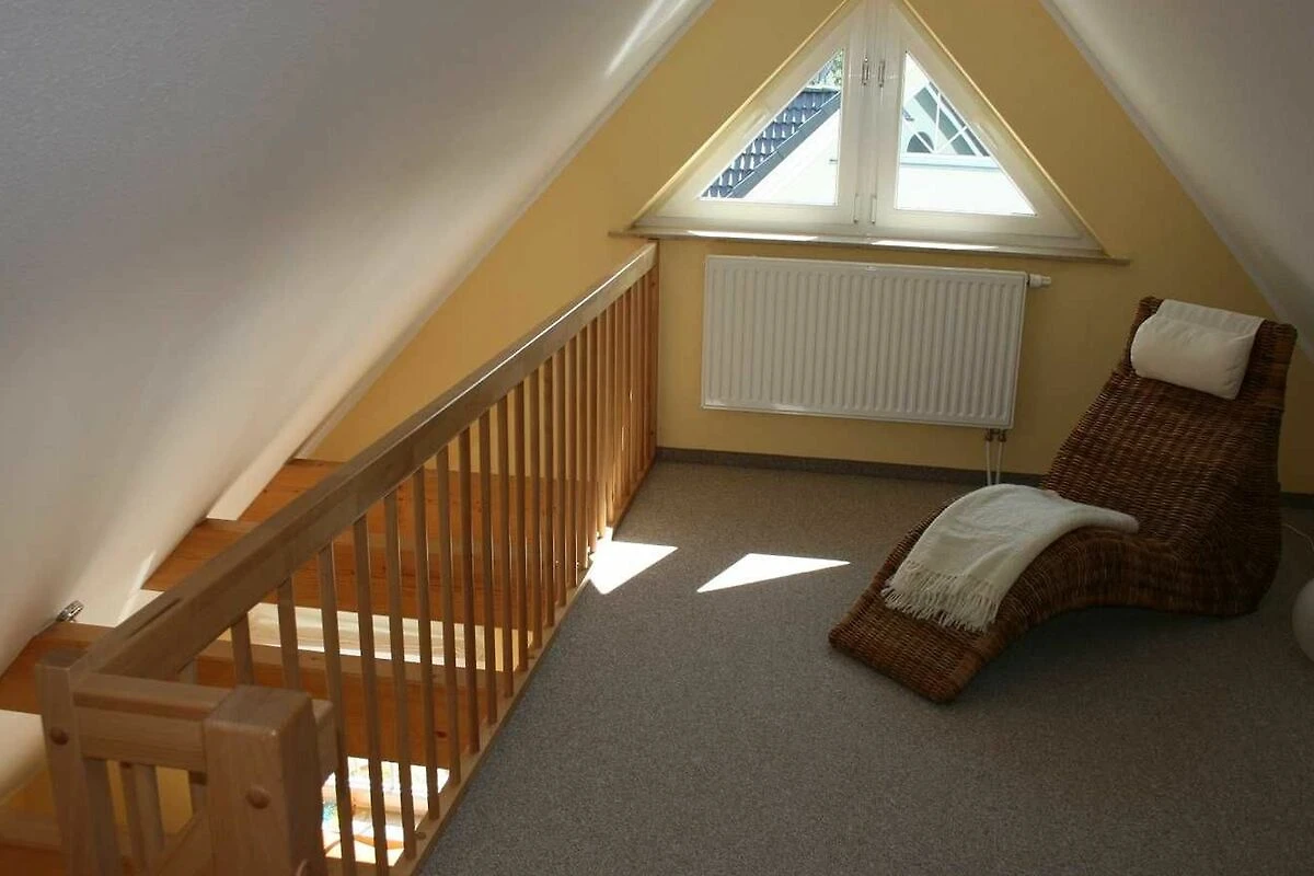 Die 2-Raum-Ferienwohnungen befinden sich im Erdgeschoss mit Terasse. Im Obergeschoss befindet sich eine 4- Raum-Wohnung mit grossem Balkon. Eine dezent im Wohnbereich integrierte Holztreppe (Raumspartreppe ) führt auf die Galerie. Das Haus ist mit Fussbodenheizung ausgestattet. Jede Wohnung verfügt über eine offene Küche. Zum Ferienhaus gehört ein Garten mit unverbautem Blick auf eine grosse Wiese, der von allen Gästen des Hauses genutzt werden kann. Zu jeder Wohnung gehört ein Parkplatz.