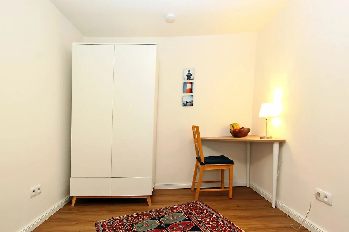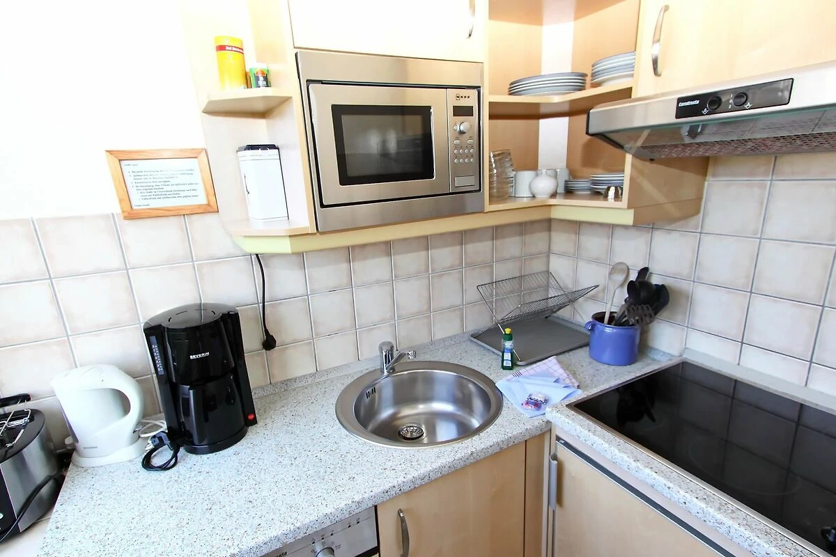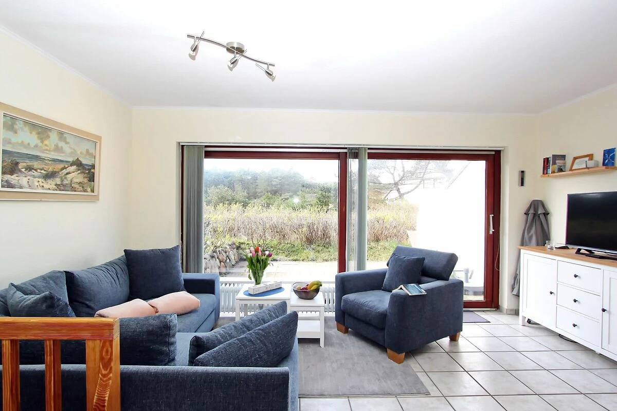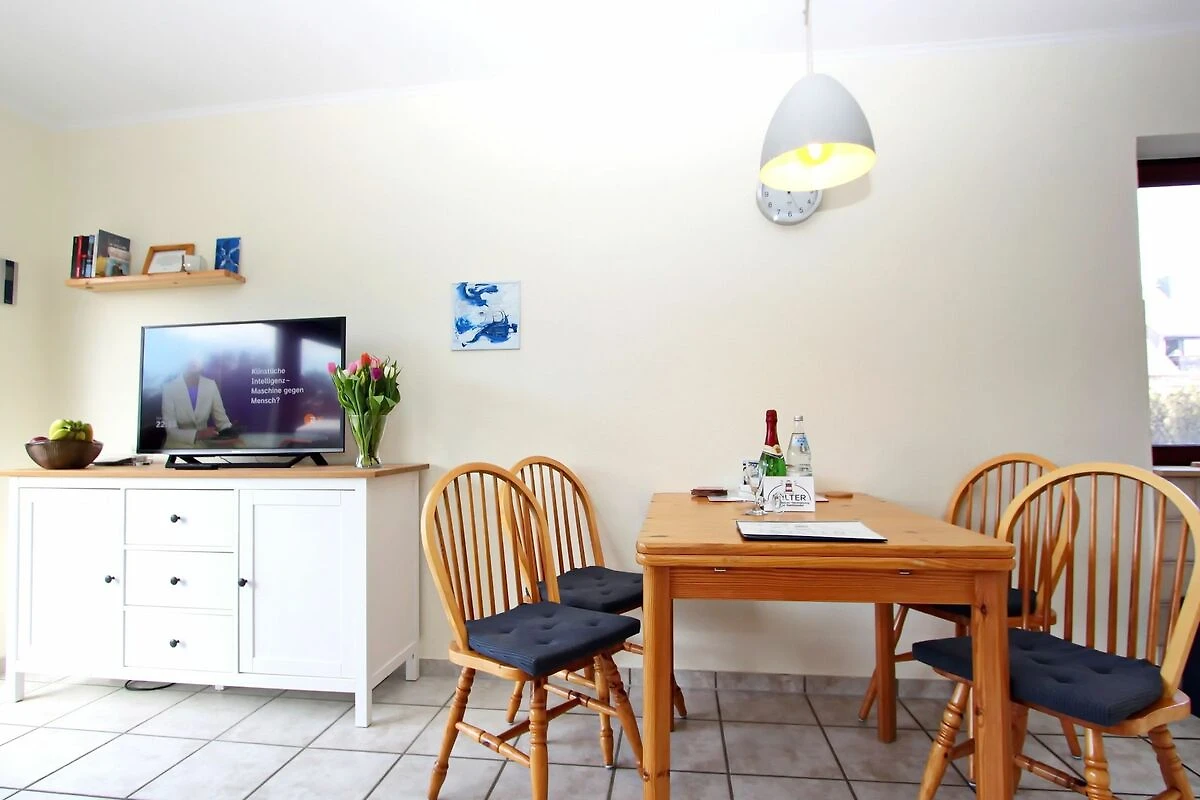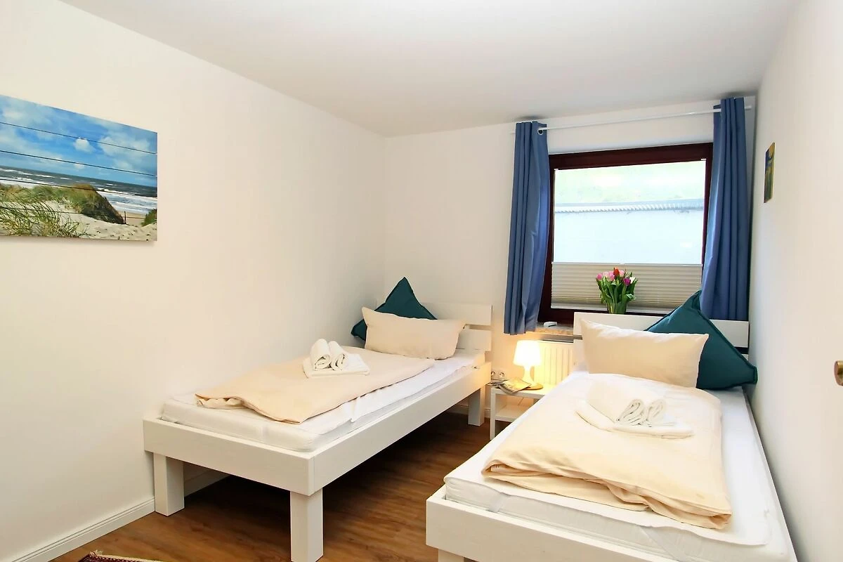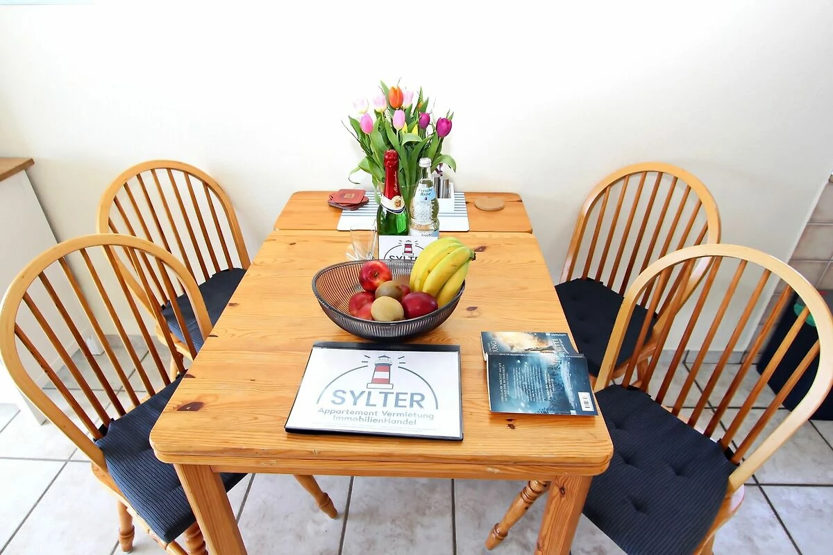 Teilrenovierung Ende 2022 (Änderungen der Ausstattung vorbehalten)!!! ganz ruhig gelegenes, modernes 3 Zimmer Appartement für bis zu 6 Personen im Herzen von Hörnum über EG/UG mit ca. 60m², Geschäfte des täglichen Bedarfs sind in unmittelbarer Nähe; Im EG befindet sich ein Wohnraum mit einem gemütlichen Ecksofa (mit Schlaffunktion) und einem Sessel sowie einem Couchtisch, Zugang zur Süd-/Westterrasse mit Blick ins Grüne und Terrassenmöbeln, CD-Player mit Webradio, DVD-Player, Brettspiele, Karten sowie ein Bügelbrett und -eisen sind ebenfalls vorhanden, Schrank, Smart-TV, Esstisch für 4-6 Personen, kleine offene Küche mit Ceranherd, Mikrowelle, Geschirrspüler, Kühlschrank mit Gefrierfach; ein separater Schlafraum mit Doppelbett und ausreichend Schrankfläche, Flur mit Garderobe. Über eine Holztreppe gelangt man ins UG. Dort befindet sich ein weiterer separater Schlafraum mit zwei Einzelbetten, Schrank, Tisch und zwei Stühlen; Duschbad/WC mit Fussbodenheizung. Im Nachbarhaus befindet sich der Wellnessbereich mit kostenlosem Schwimmbad (4m x 8m) und einer Münzsauna. Nichtraucher! Die Tierhaltung ist nicht gestattet! Ein separater Kfz-Stellplatz gehört ebenfalls dazu. Waschraum mit Münzwaschmaschine und -trockner befindet sich im Keller.