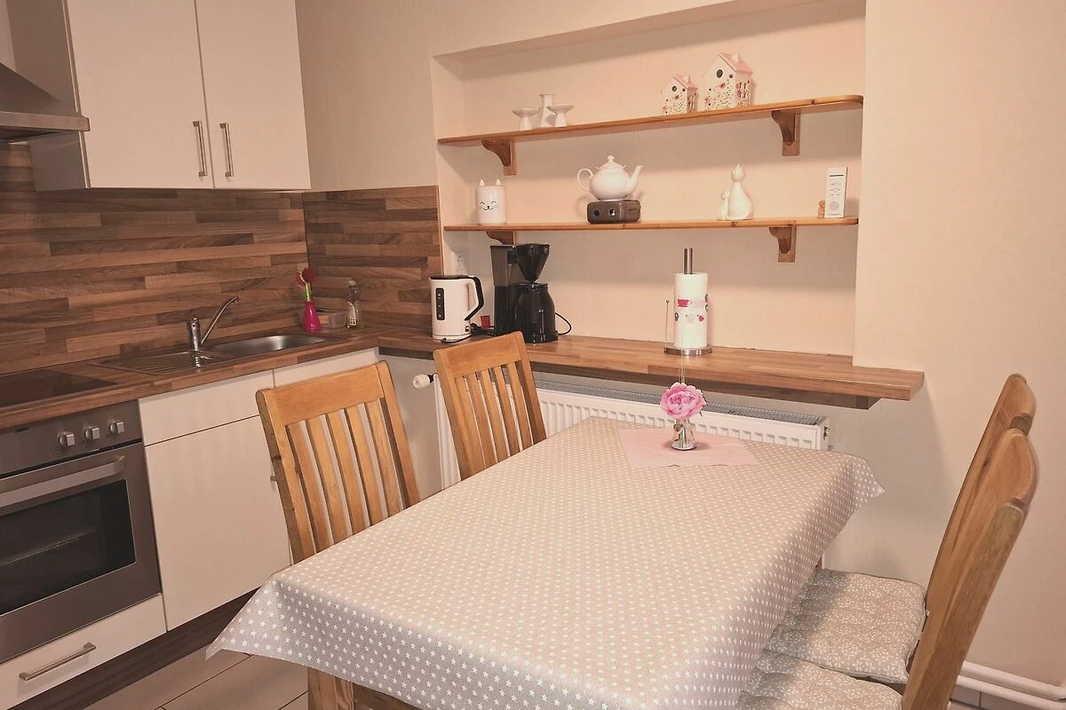 Die helle und gemütliche Ferienwohnung im beschaulichen Dörfchen Barderup ist ländlich gelegen, auf einem ehemaligen Bauernhof. Sie verfügt über einen eigenen Eingang. Die helle Wohnung erstreckt sich auf 75 qm über zwei Etagen und ist für bis zu vier Personen geeignet: im Erdgeschoss befinden sich das gemütliche Wohnzimmer mit Sofaecke und TV sowie eine offene, modern und sehr gut ausgestattete Küche (inkl. Geschirrspüler) mit Esstisch und Stühlen. Hinter der Küche befindet sich ein Schlafzimmer mit zwei Einzelbetten und die Treppe ins Obergeschoss: hier liegen das hübsche Schlafzimmer mit Doppelbett und grossem Kleiderschrank sowie das helle Duschbad. Im Garten steht den Gästen eine Sitzgruppe mit Tisch und Stühlen zur Verfügung. Fahrräder können im geräumigen Eingangsbereich abgestellt oder im Schuppen gleich neben dem Haupthaus untergestellt werden.