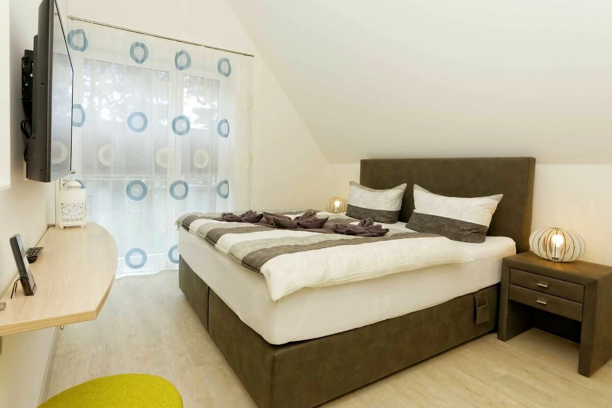 • 1 Schlafraum mit Boxspringbett, TV mit ca. 100cm Bilddiagonale, Einbauschrank und Zugang zum eigenen WC