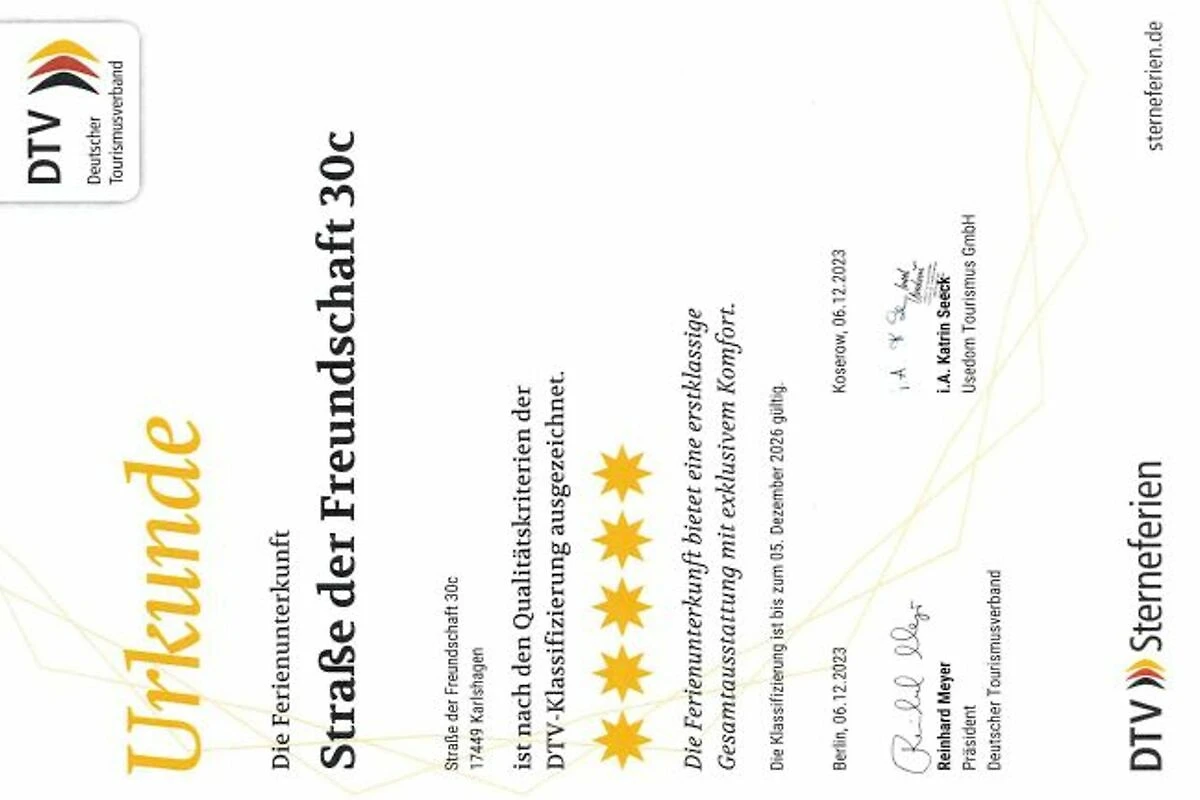 5-Sterne-Klassifizierung durch den Deutschen Tourismusverband.