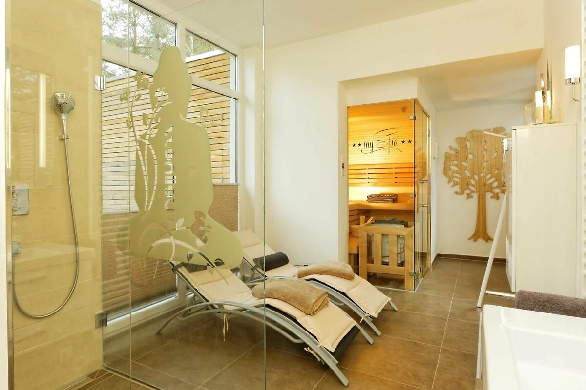 • Wellnessbadezimmer (Raumhöhe 2,8 m) mit Sauna, Ruhebereich mit 2 Liegen, Dusche, WC, Fön