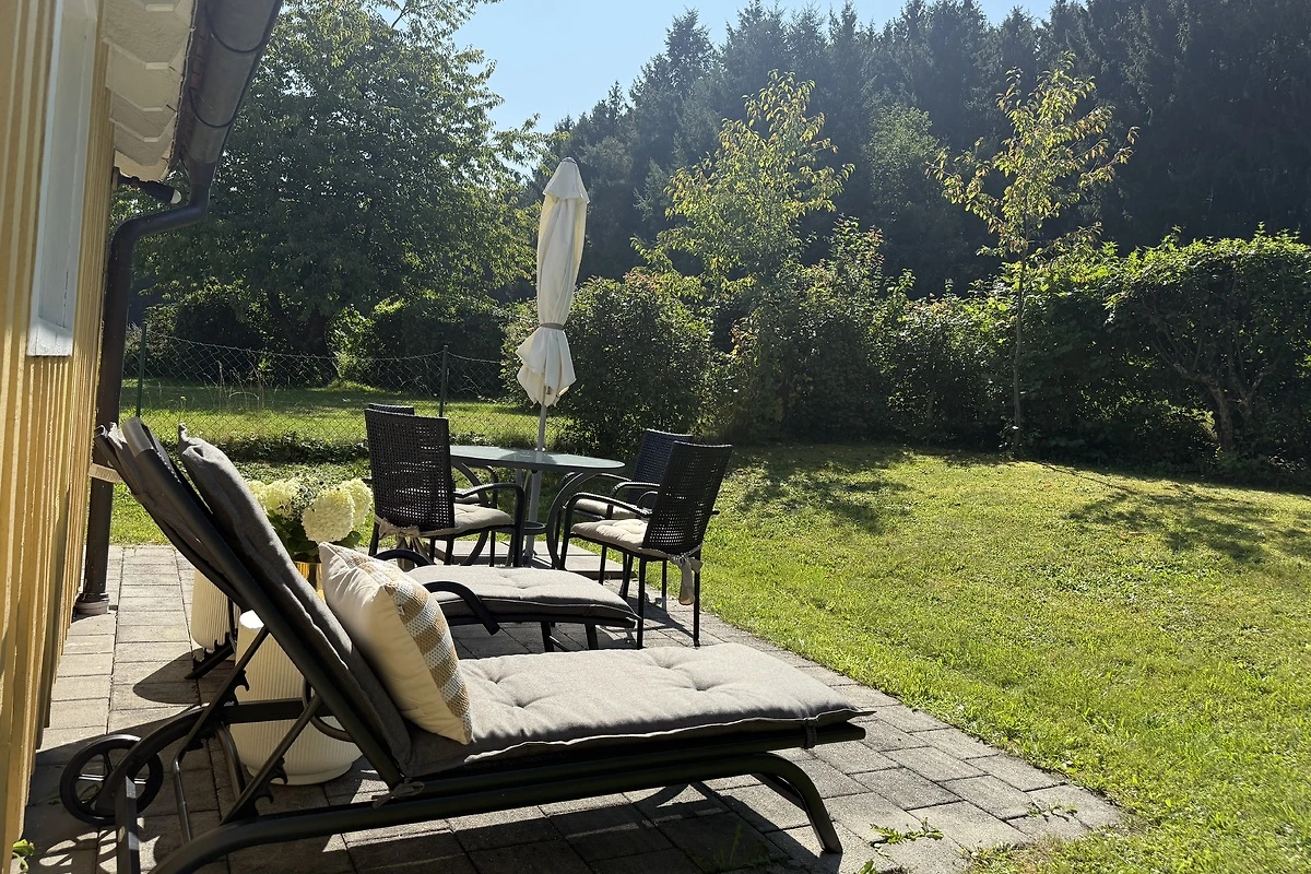 Super das jedes Haus eine eingezäunte Terrasse mit Rasen hat, so konnten unsere beiden Hunde sich frei bewegen, ohne das man sich ständig nach ihnen umschauen musste. Die Ferienhäuser liegen sehr zentral, Bad Birnbach und Bad Griesbach liegen nicht weit weg mit den Termen. Pfarrkirchen mit allen Einkaufsmöglichkeiten liegt nur 3 KM entfernt. Aber das Gute liegt so nah, der Bäcker Vorort ist hervorragend.
